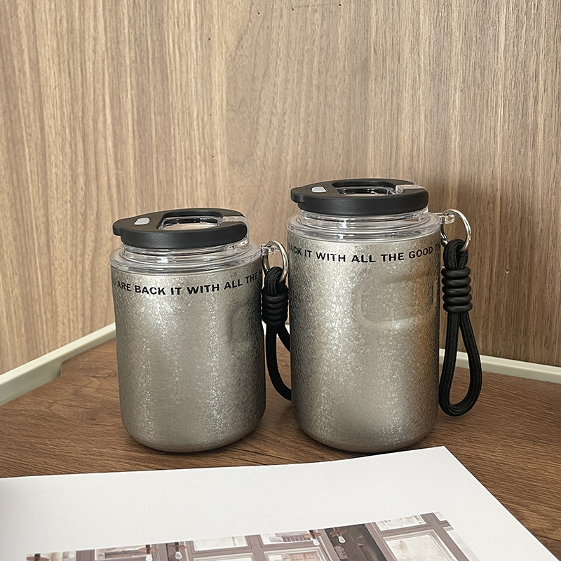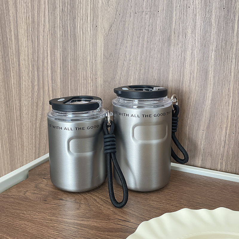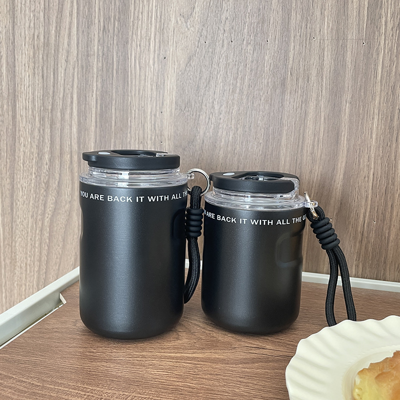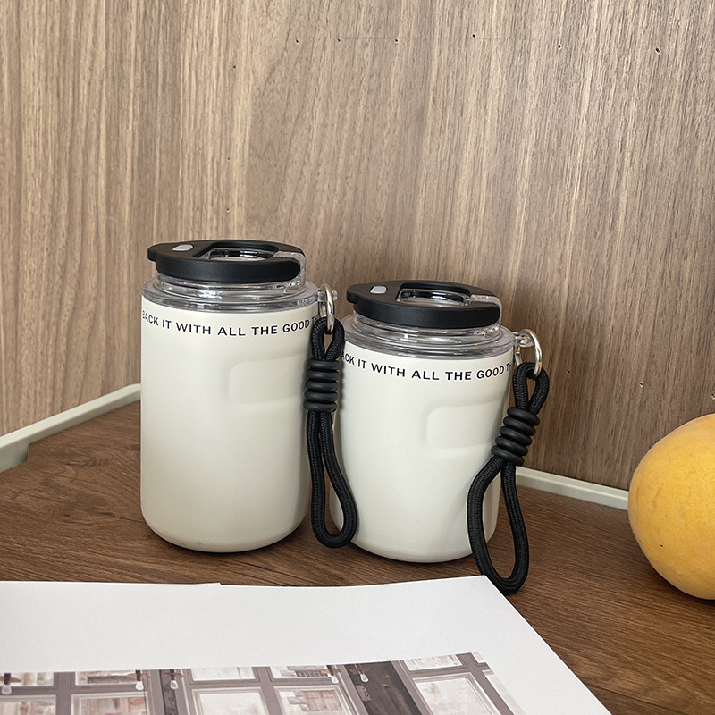 新款高颜值小可咖啡杯男女外出便携带提绳车载直饮不锈钢保温杯