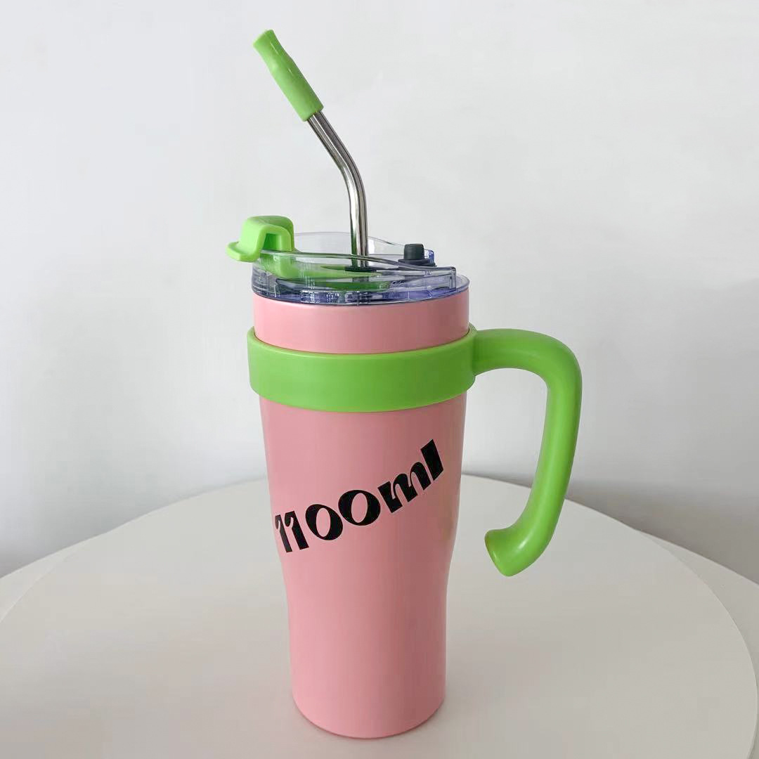 巨无霸保温杯女高颜值带吸管冰霸杯大容量双饮水杯男手柄咖啡杯子