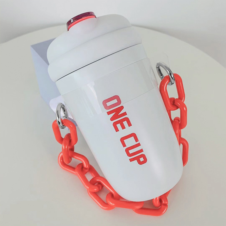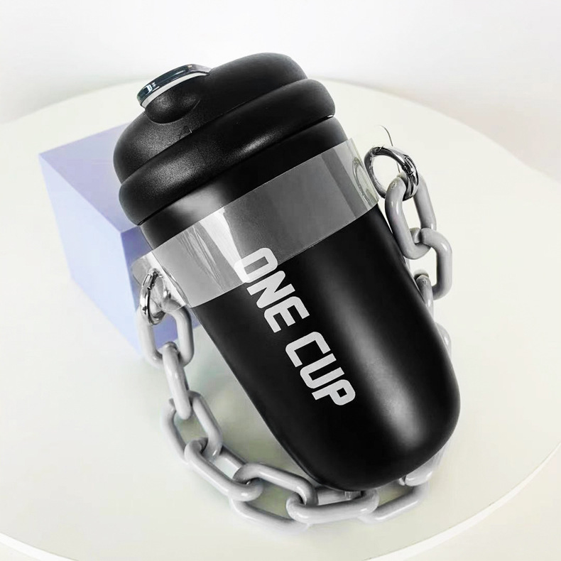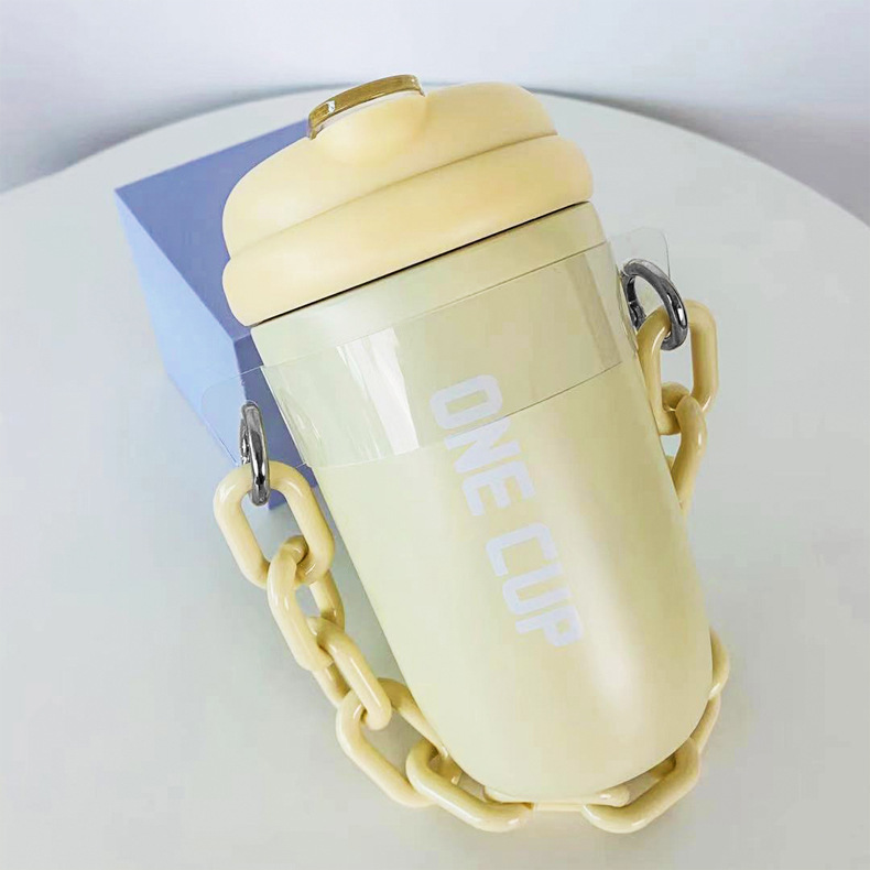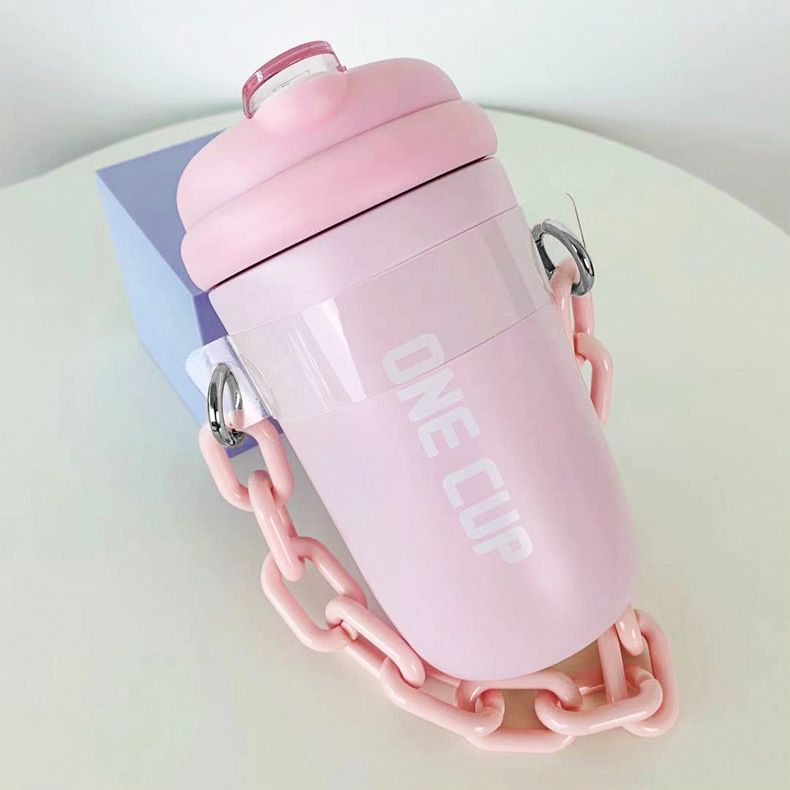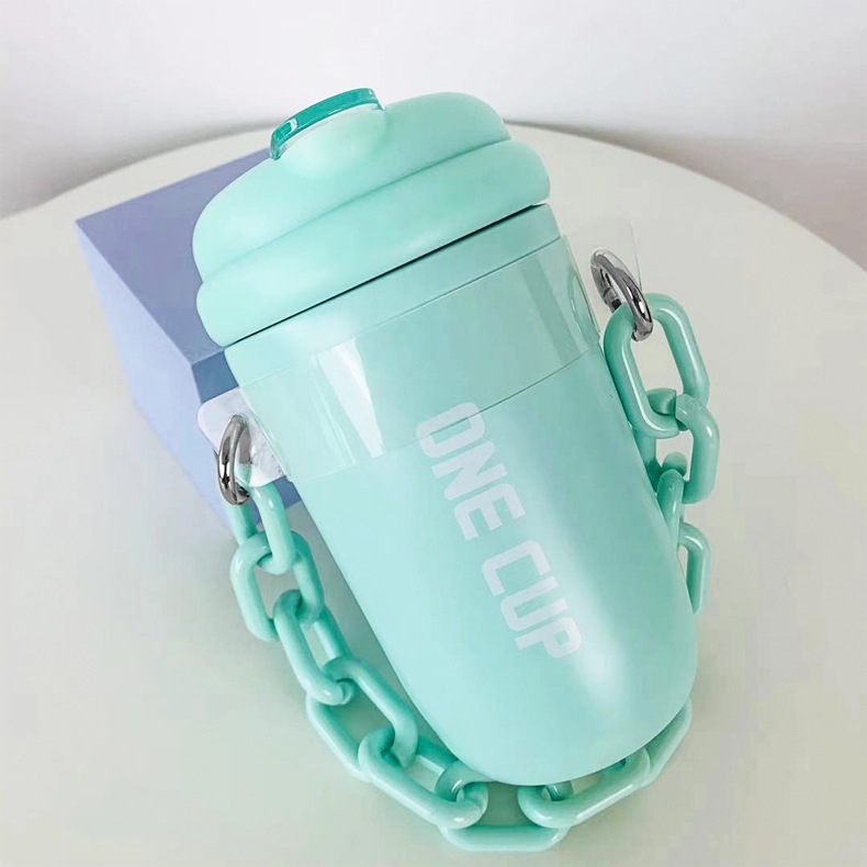 简约新款男女学生高颜值手提链条随手杯情侣吸管杯户外便携保温杯