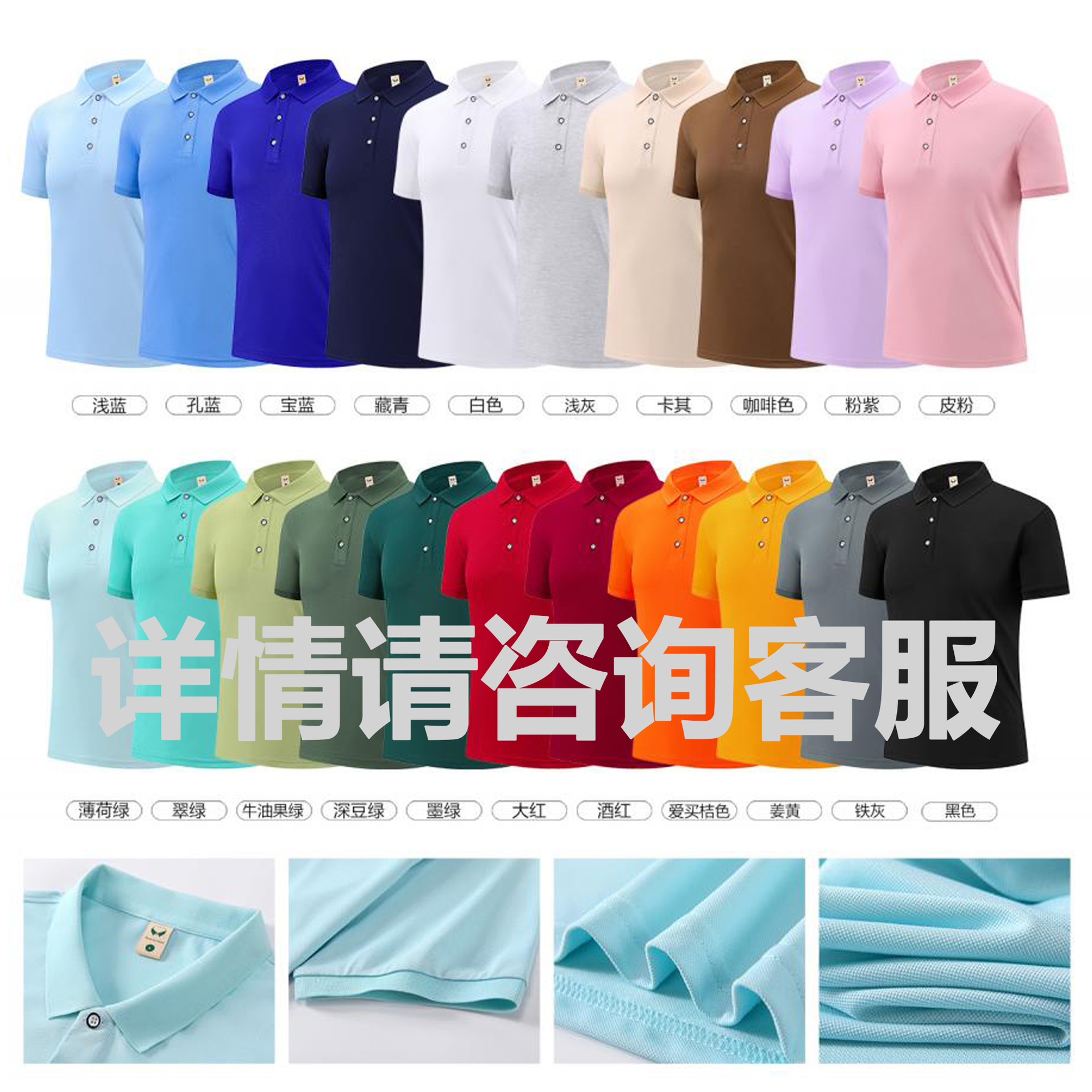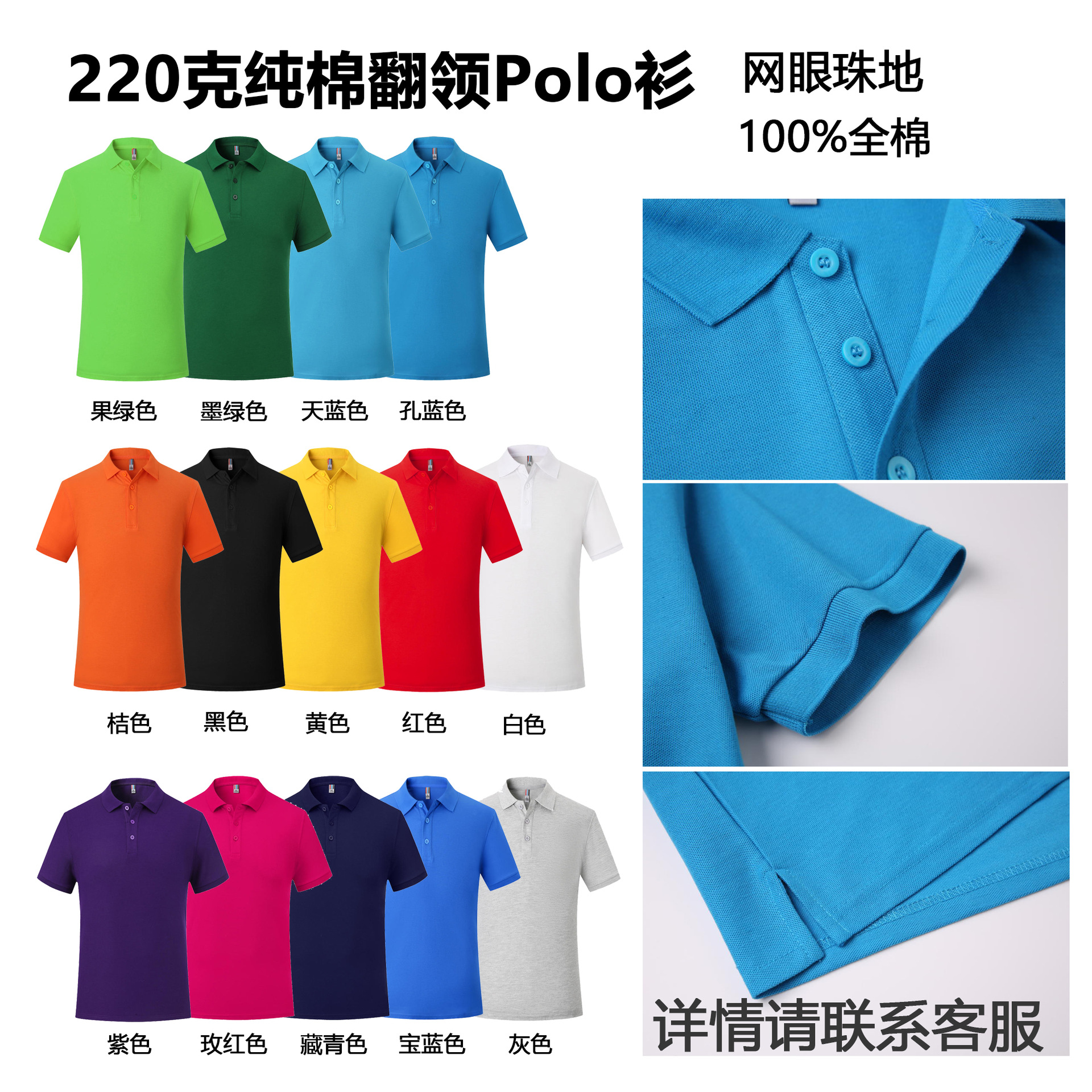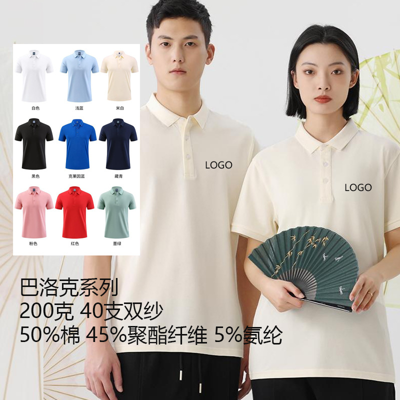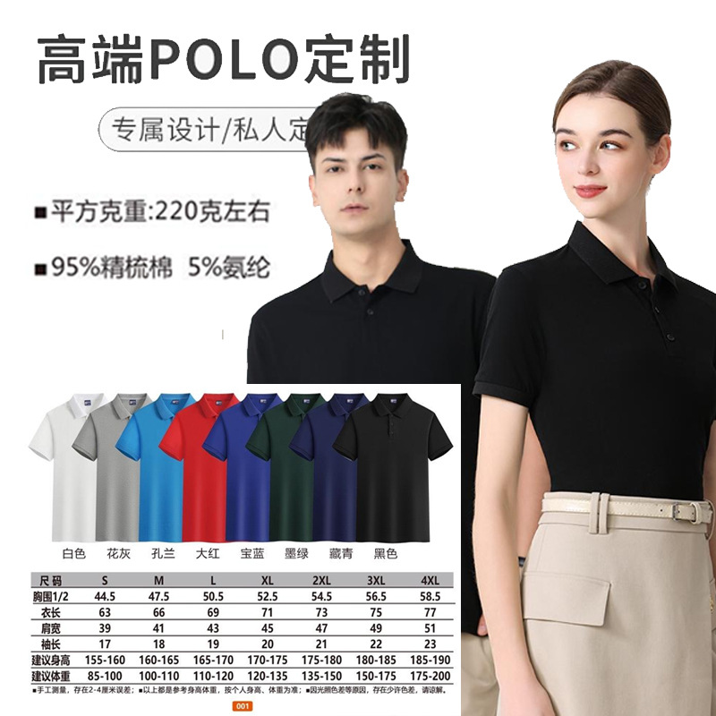 珠地棉工装 polo衫定制工作服印logo纯棉翻领文化衫广告衫刺绣DIY