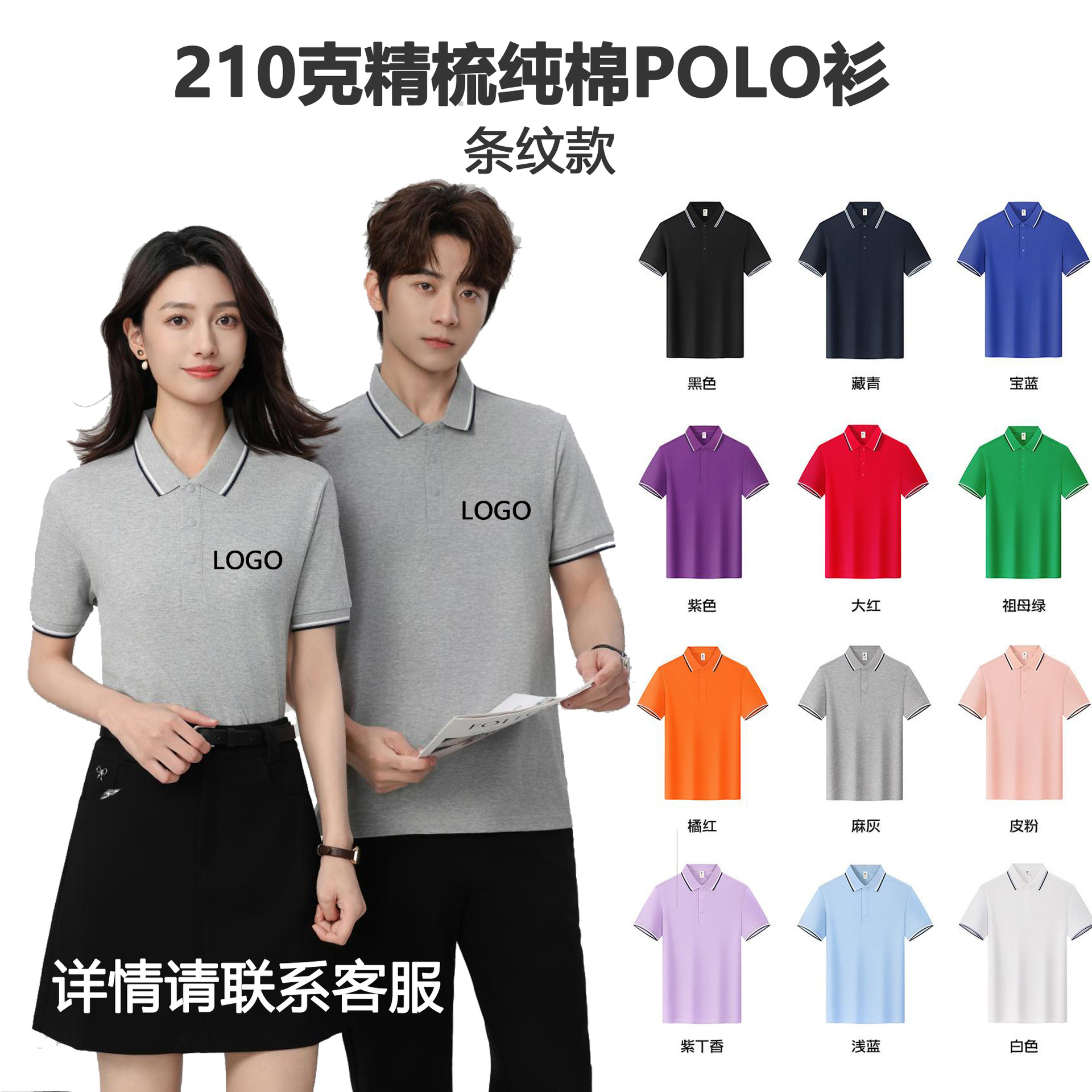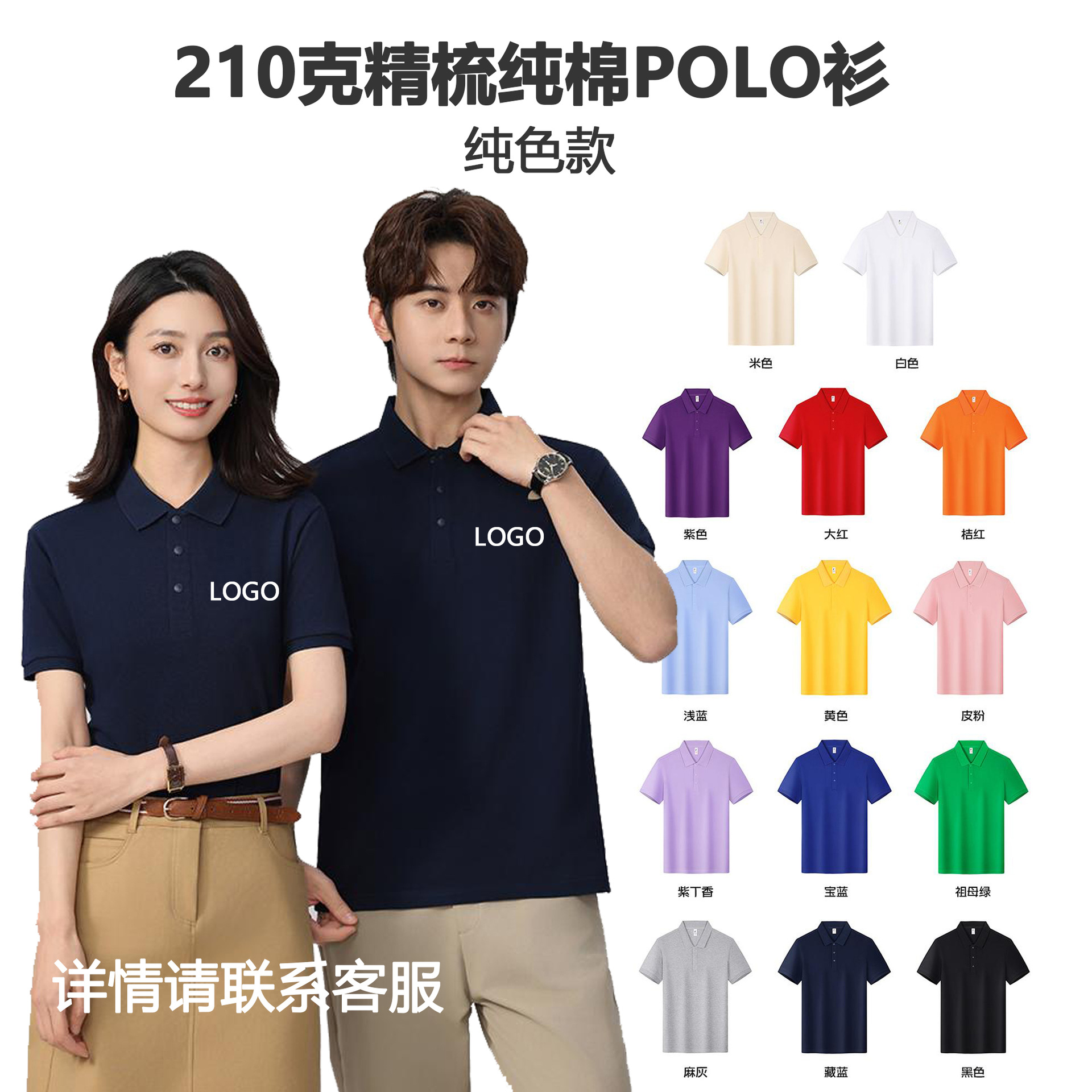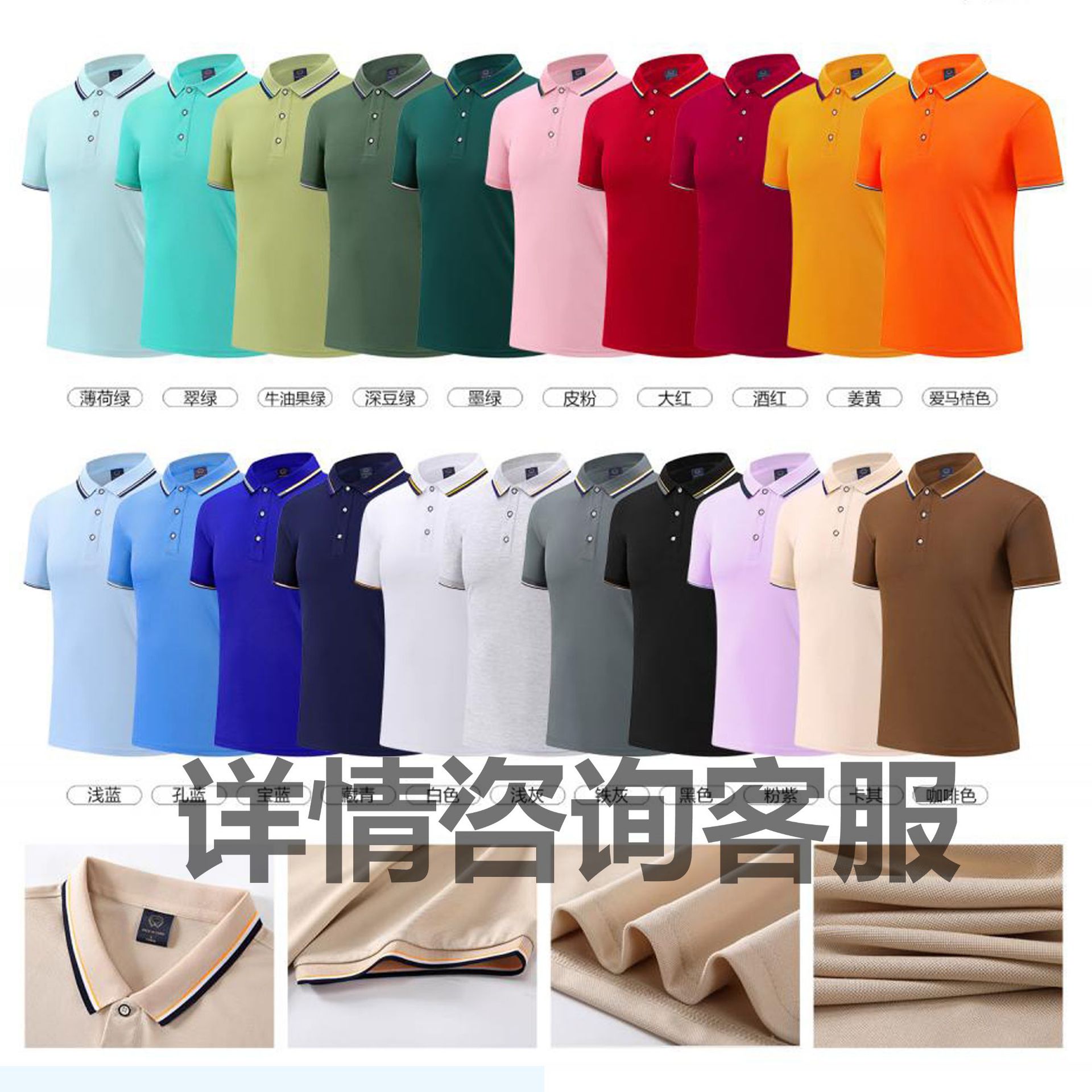 珠地棉工装 polo衫定制工作服印logo纯棉翻领文化衫广告衫刺绣DIY