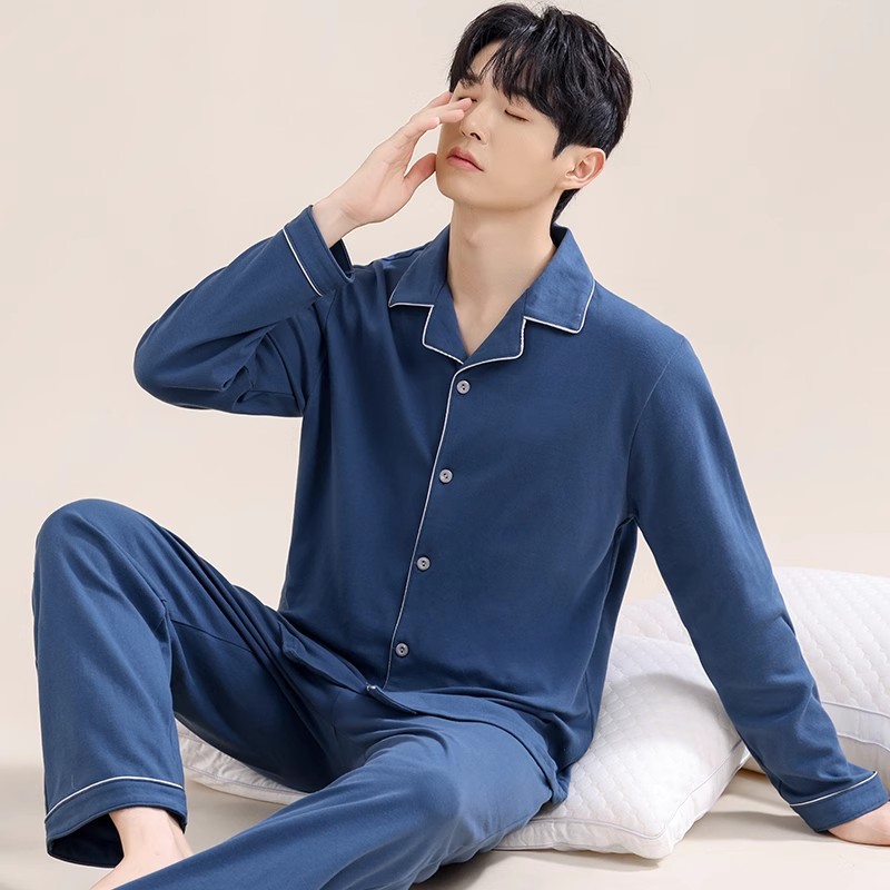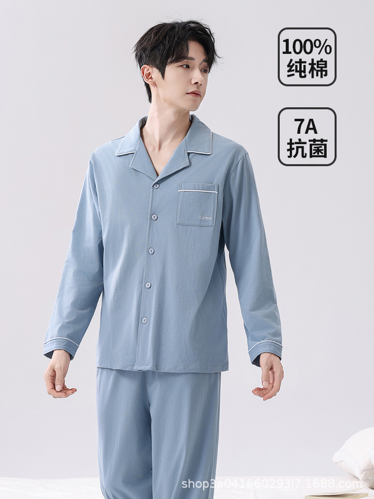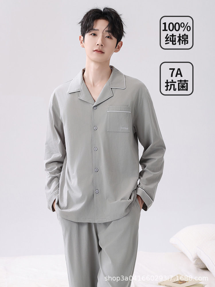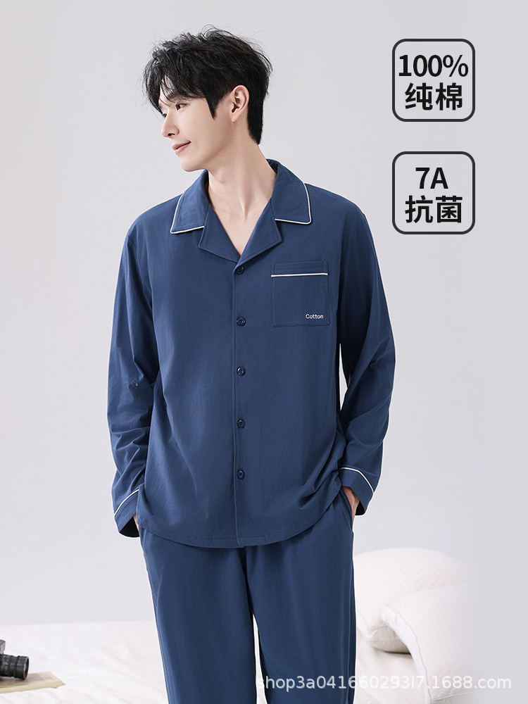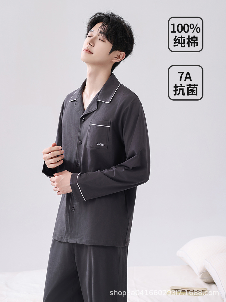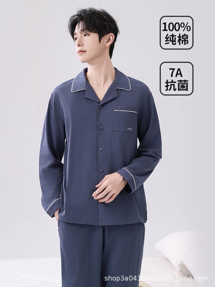 男士睡衣纯棉男款100%棉家居服套装全棉宽松长袖长裤春秋2026新款