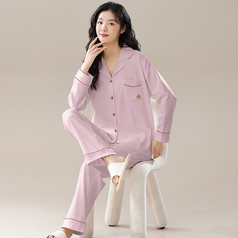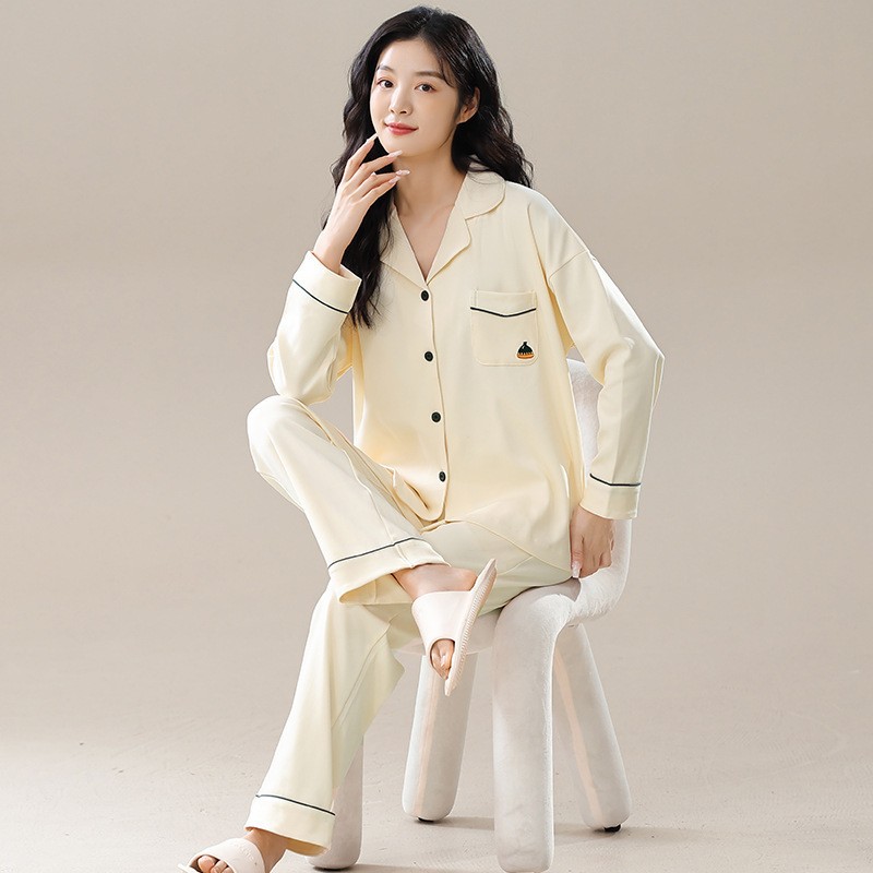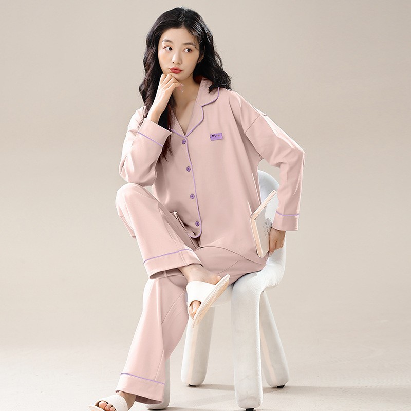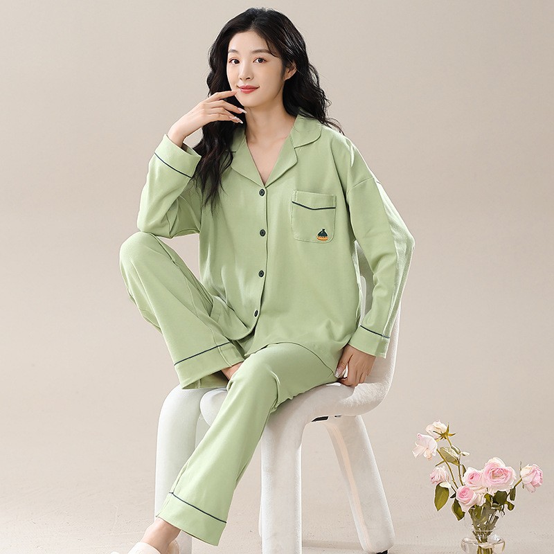 纯棉睡衣女春秋冬款长袖开衫套装简约宽松大码全棉家居服新款