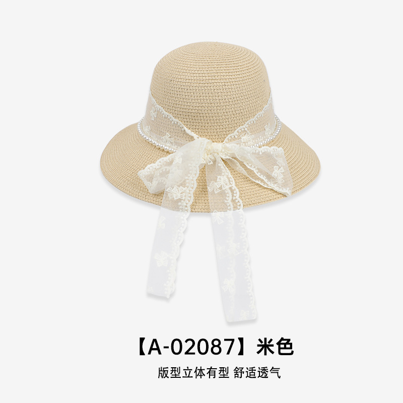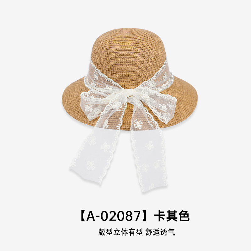 春夏季蕾丝蝴蝶结草帽女草编透气防晒遮阳帽旅游度假沙滩渔夫帽潮