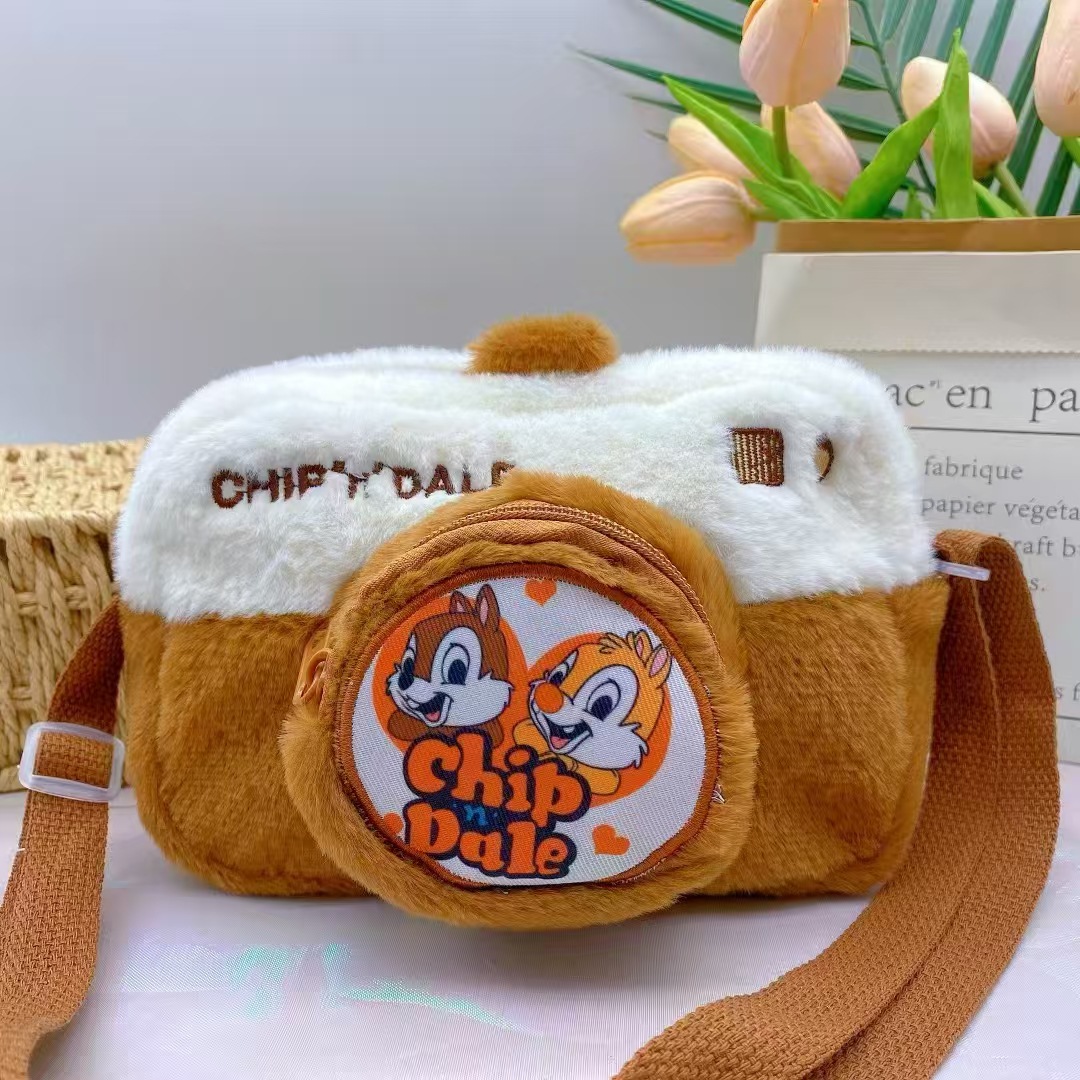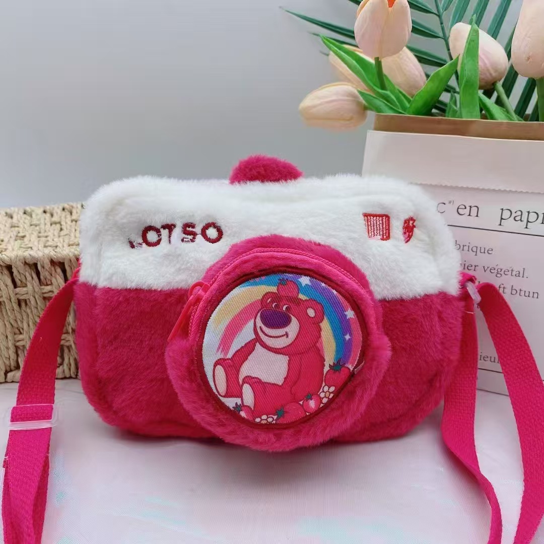 跨境相机包毛绒包包复古草莓熊毛绒斜挎包毛绒公仔单肩包女卡通包