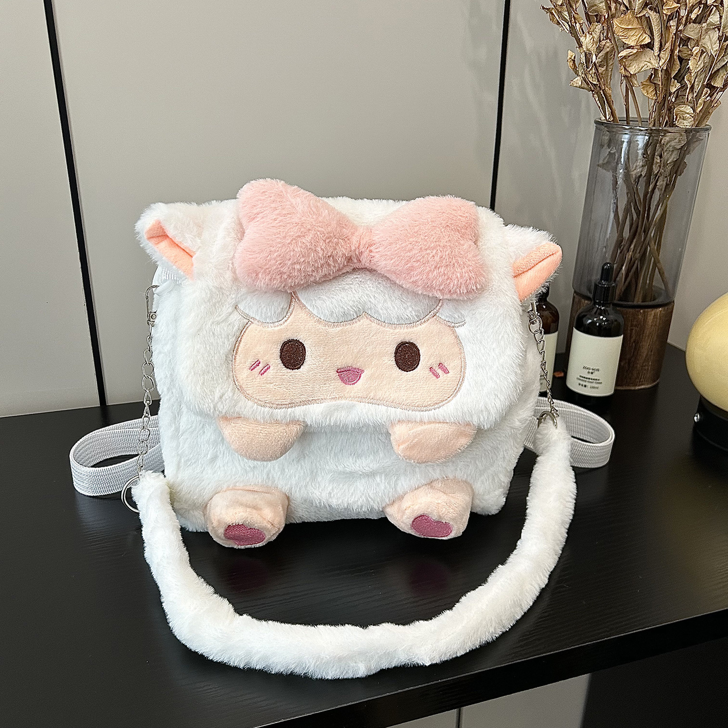 旅行少女心可爱卡通粉色小羊毛绒包包多用斜挎包手提包背包儿童包