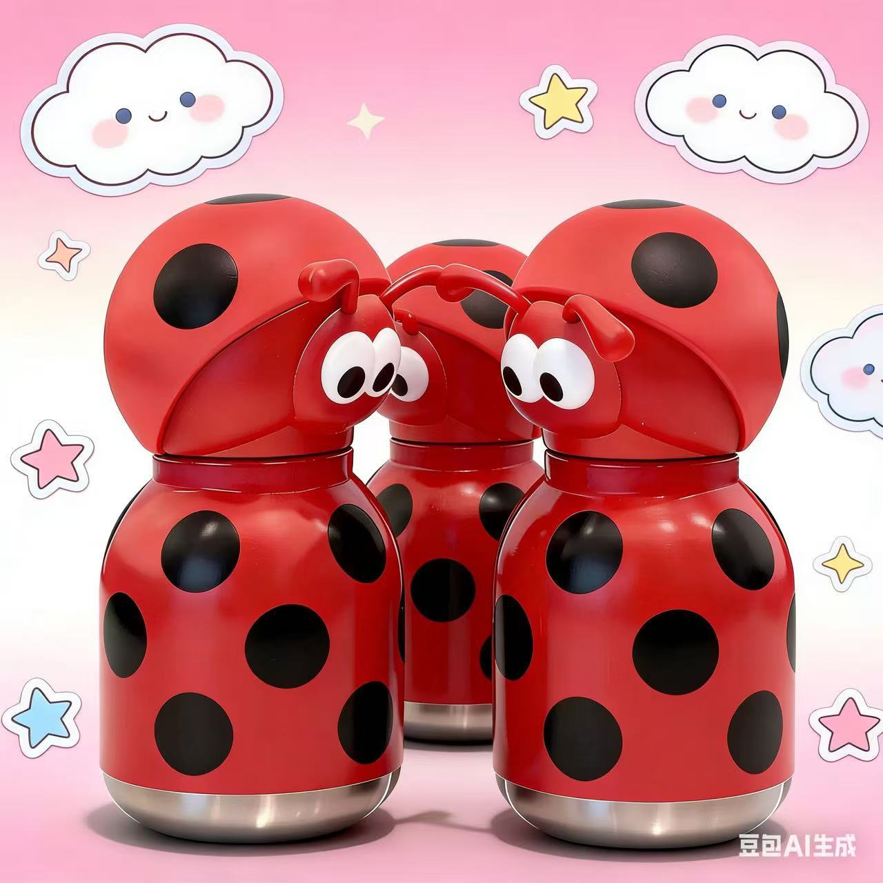 海外热门新款七星瓢虫时尚儿童公仔保温杯316不锈钢可爱卡通水杯