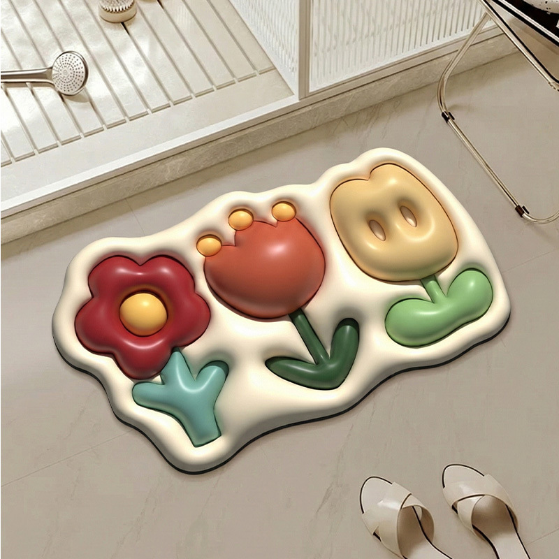 大达浴室地垫洗手间吸水门垫花朵垫子卫生间门口速干防滑脚垫跨境