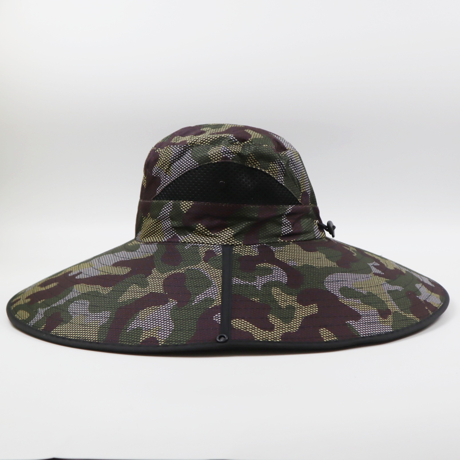 男士户外帽子迷彩帽渔夫帽钓鱼登山遮阳防晒网帽大檐太阳帽批发
