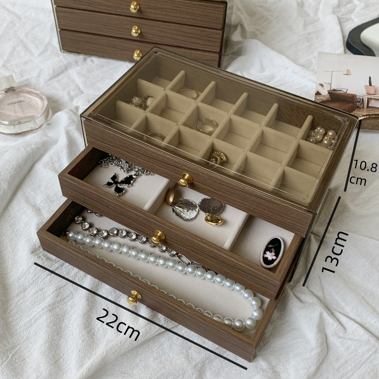 中式胡桃木首饰盒桌面复古饰品收纳盒家用多格珠宝盒耳环项链珠宝