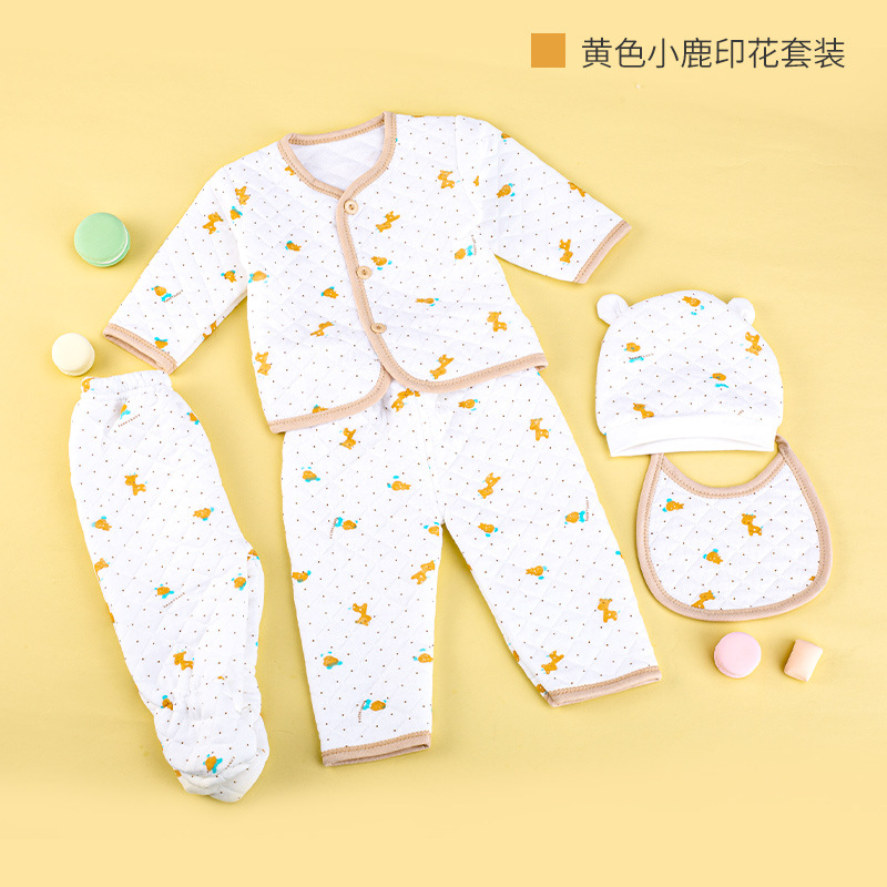 婴儿服跨境批发 0-12月新生儿衣服夹棉五件套儿童套装