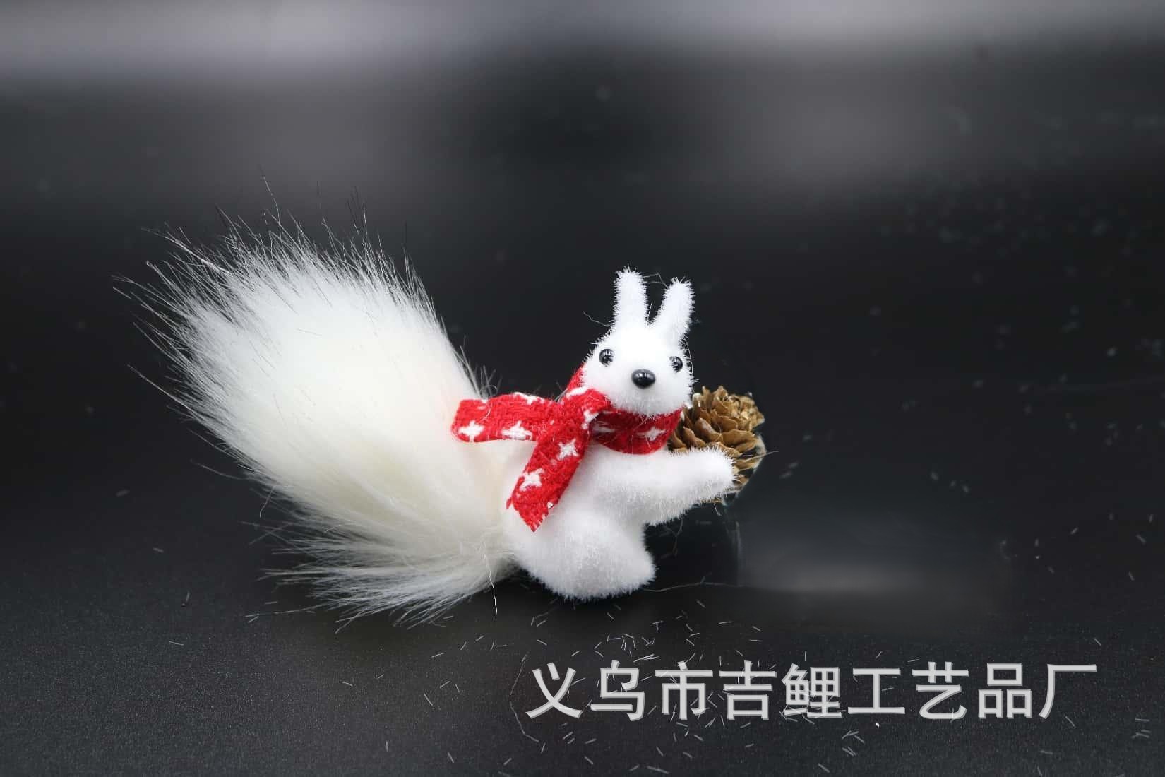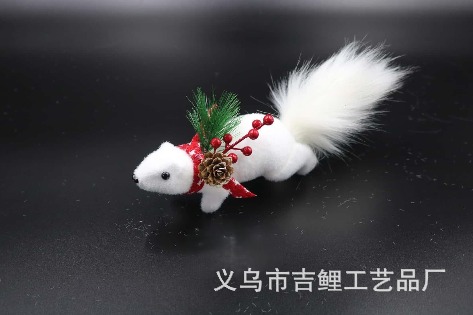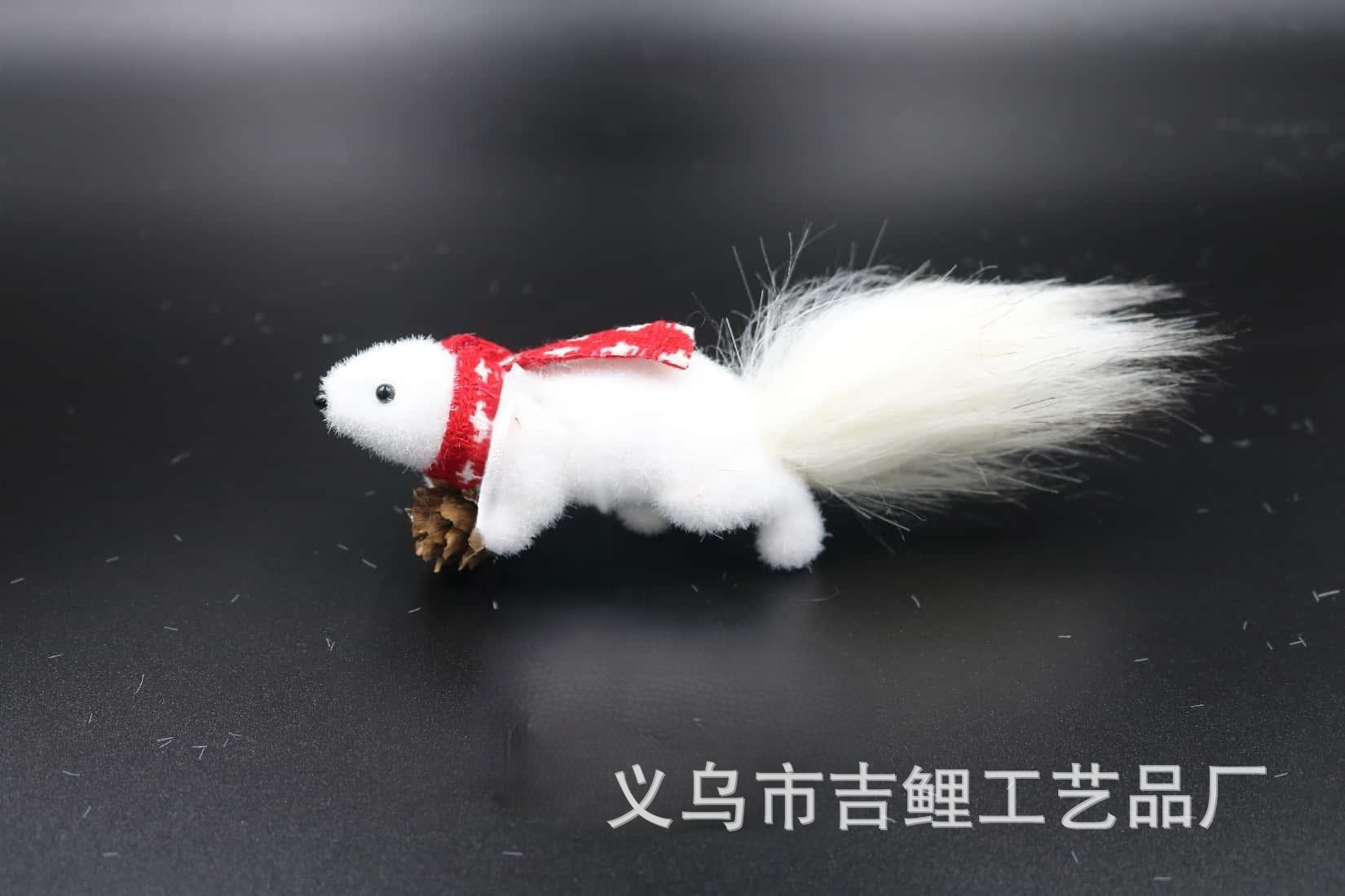 跨境专供仿真圣诞节松鼠挂件泡沫植绒动物桌面摆件松果圣诞树装饰