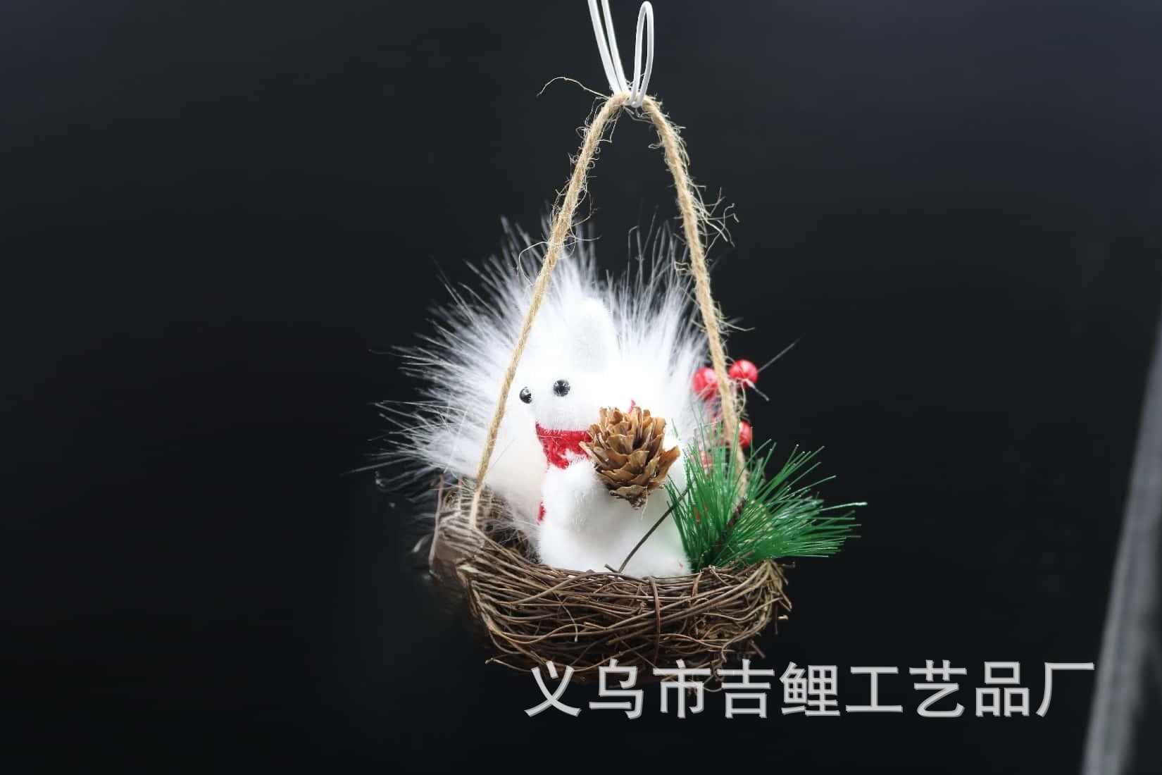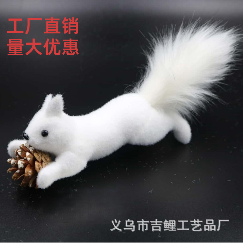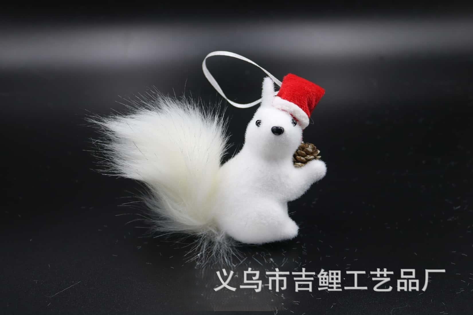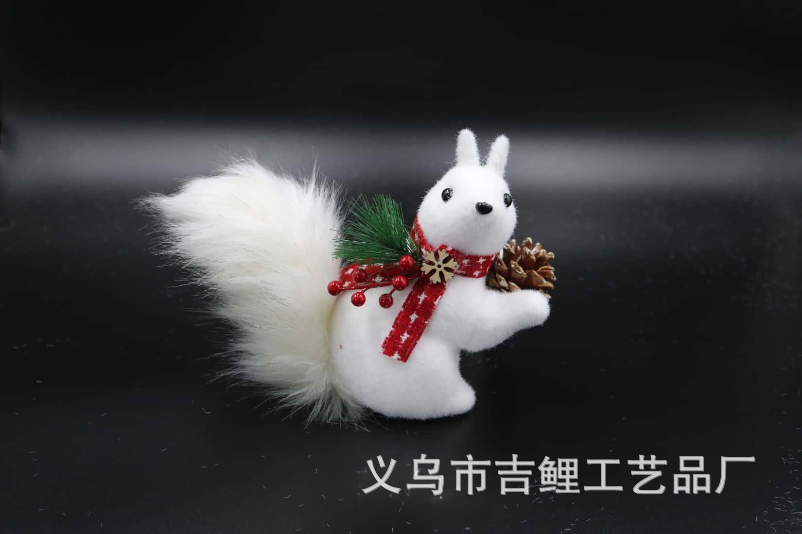 跨境专供仿真圣诞节松鼠挂件泡沫植绒动物桌面摆件松果圣诞树装饰