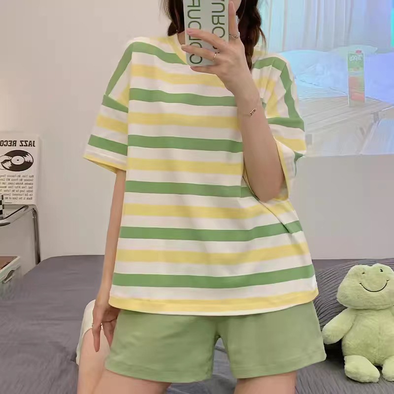 小猪印花睡衣女夏季短袖薄款圆领套装可爱卡通学生少女韩版家居服