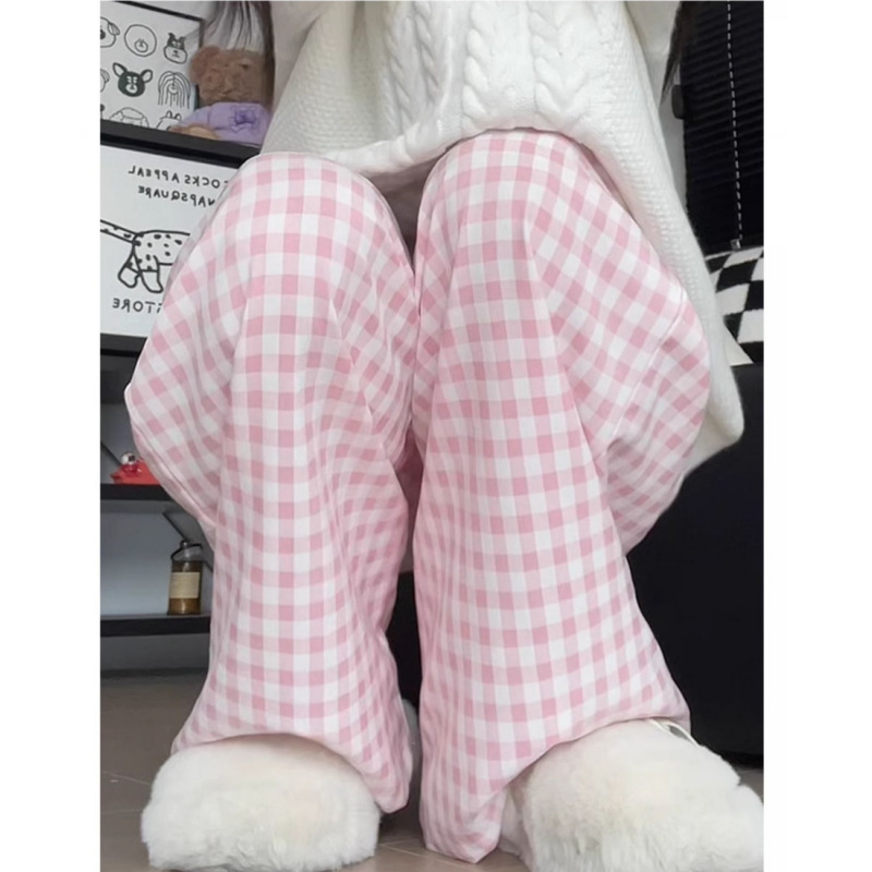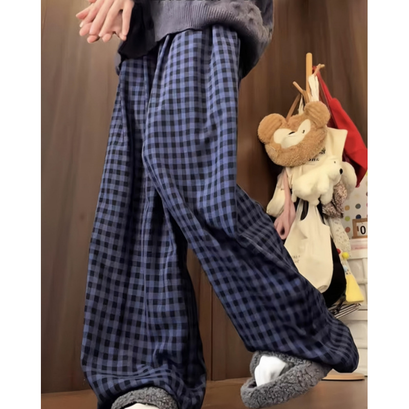 抖音质量蓝色格子裤女夏季2026爆款宽松显瘦休闲裤直筒阔腿运动裤