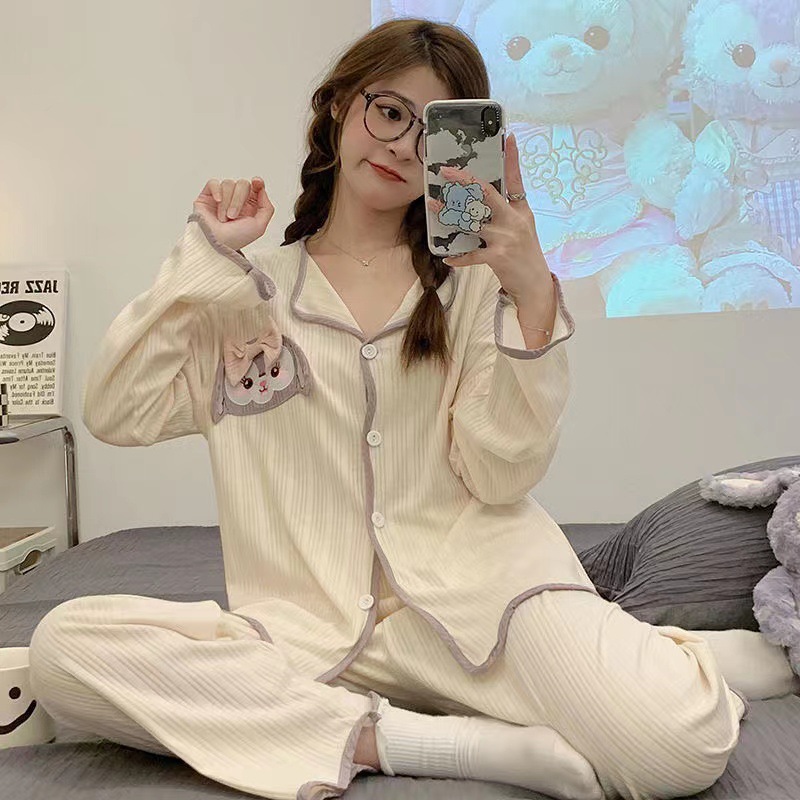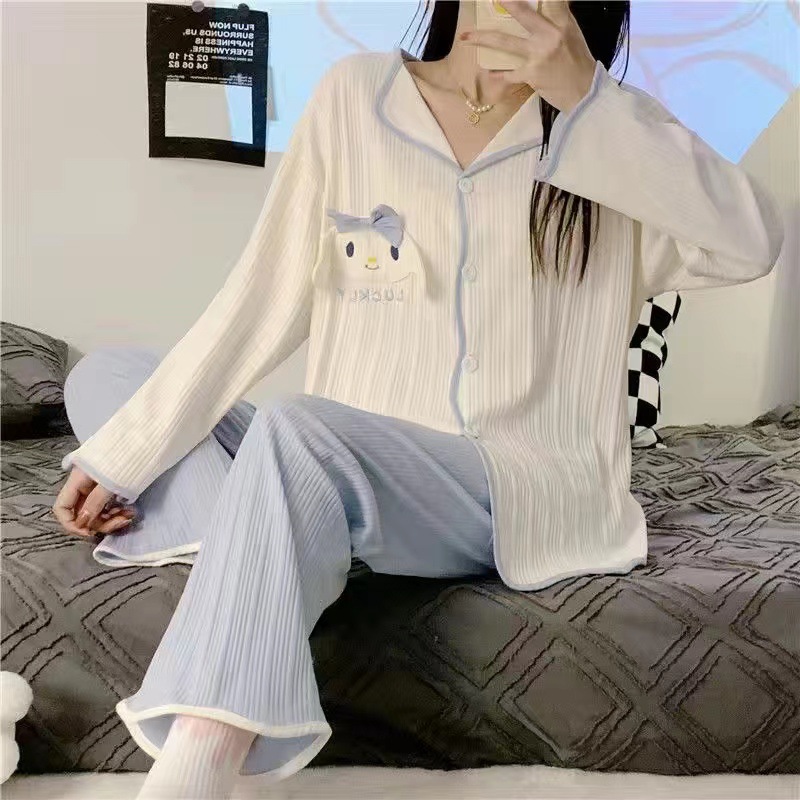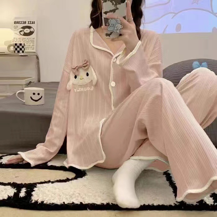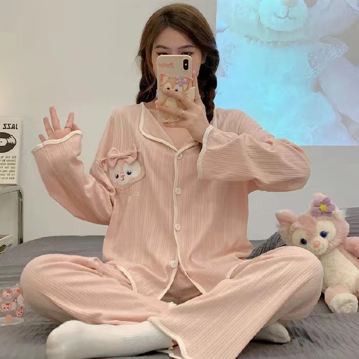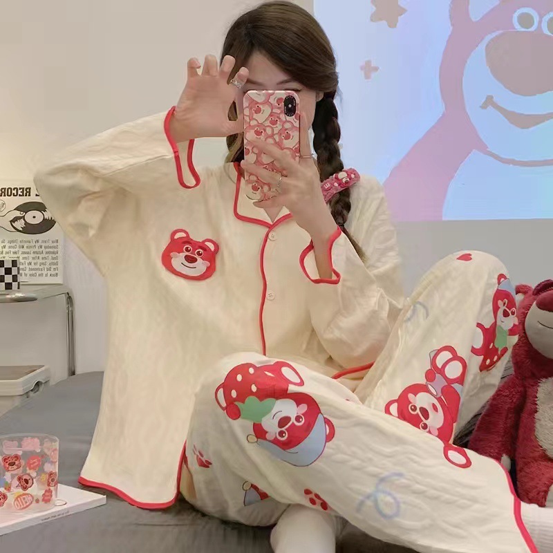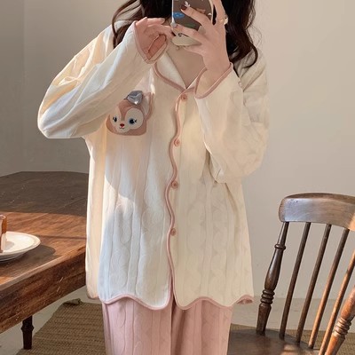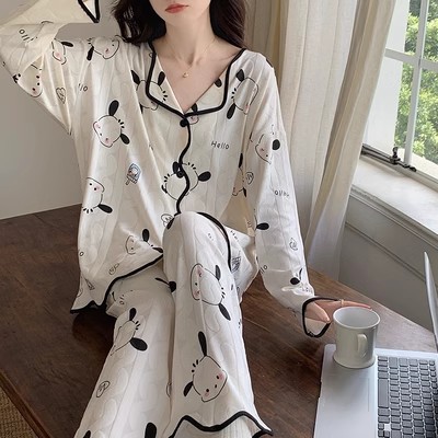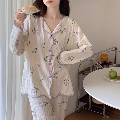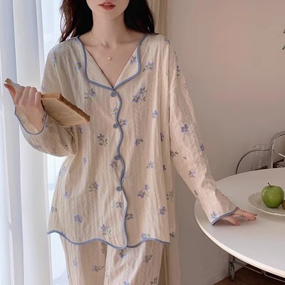 ins风网红新款睡衣春秋款开衫薄款长袖长裤宽松公主风居家服套装