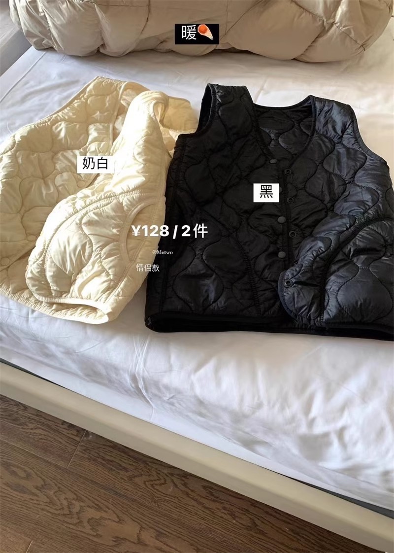 M*TWO 2242三明治2.0v领保暖菱格马甲女2024年冬季无袖坎肩内搭