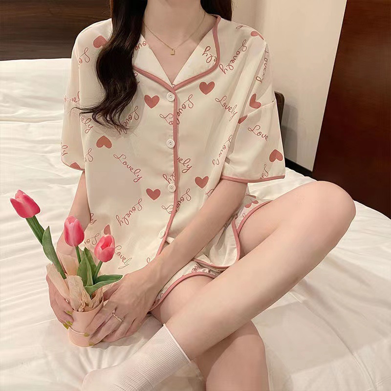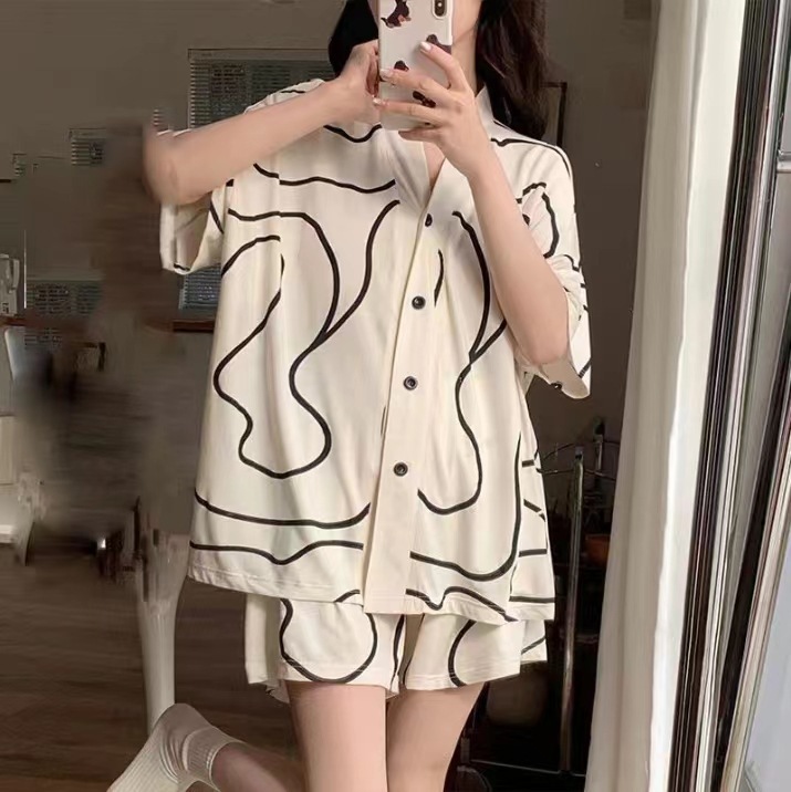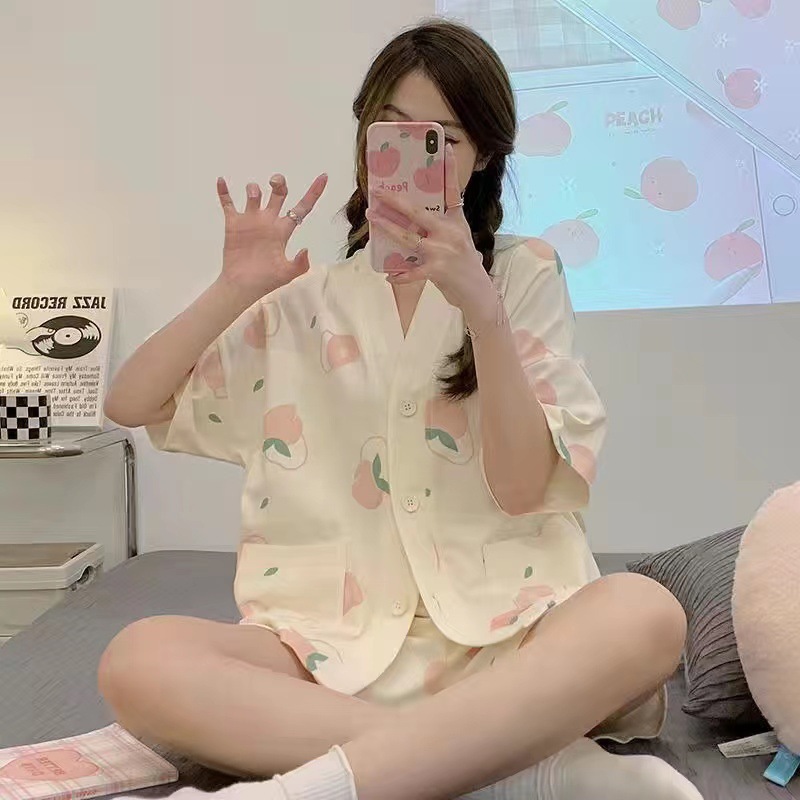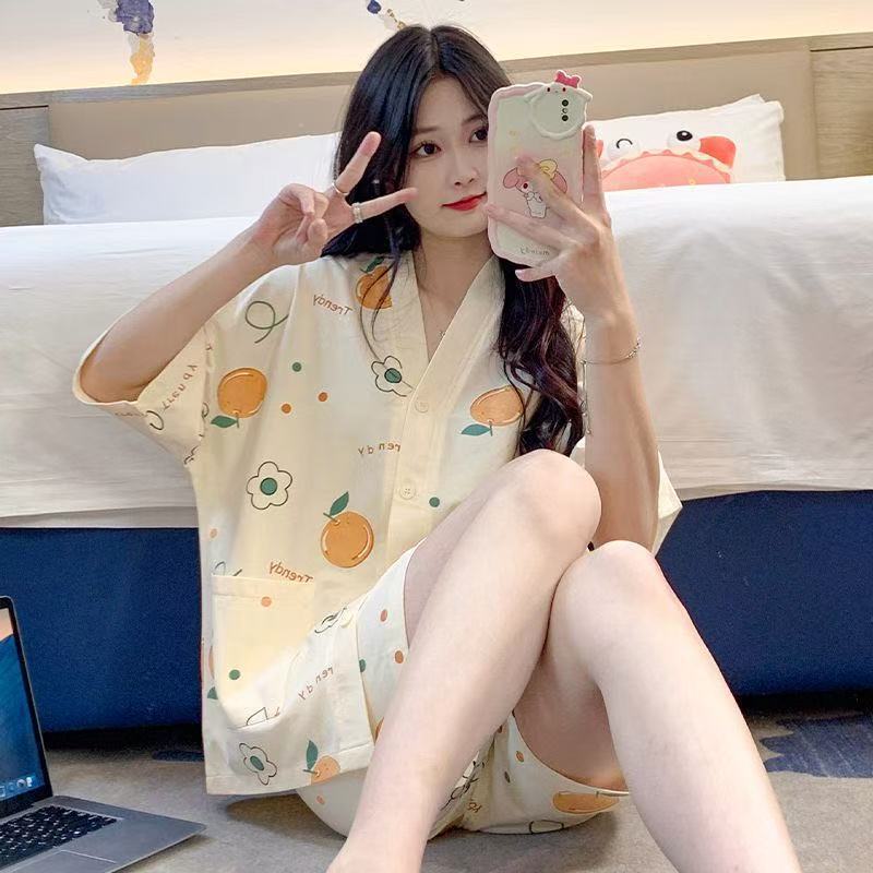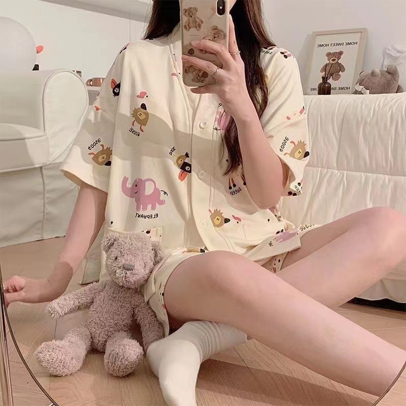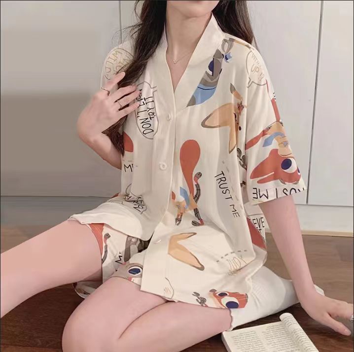 新款网红小个子睡衣女夏款短袖短裤家居服v领卡通兔子可外穿套装