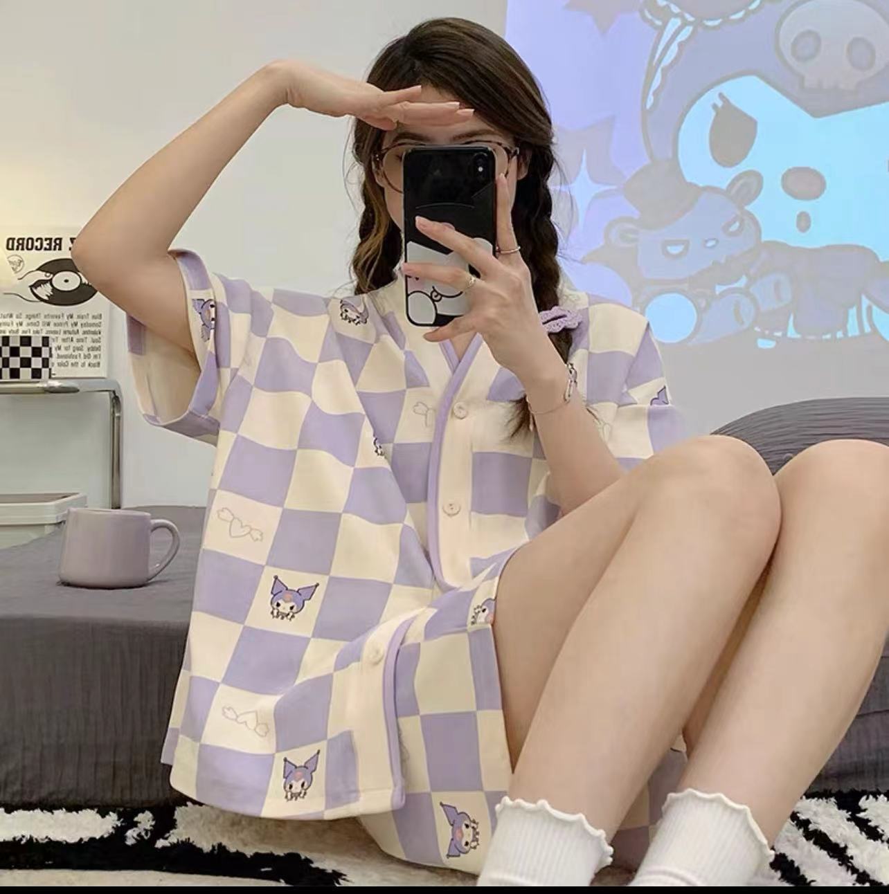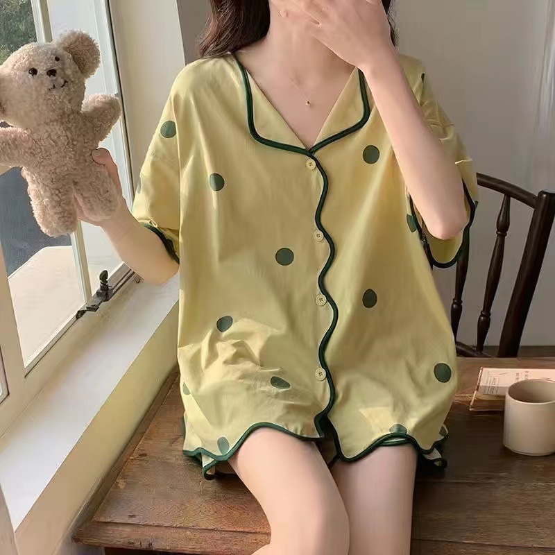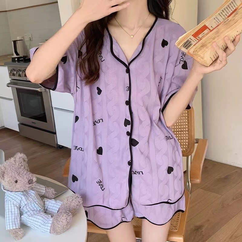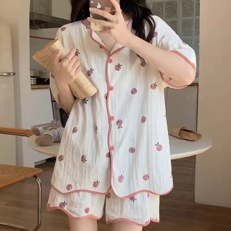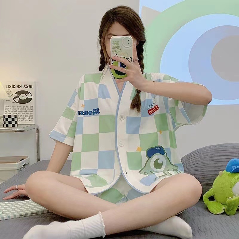 新款网红小个子睡衣女夏款短袖短裤家居服v领卡通兔子可外穿套装
