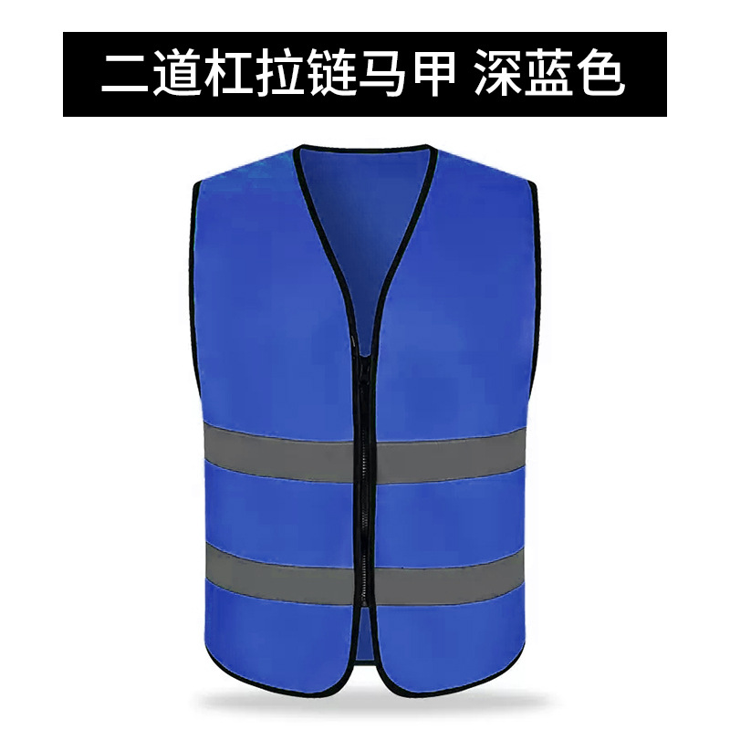 二道杠拉链马甲*深蓝色*高亮反光条