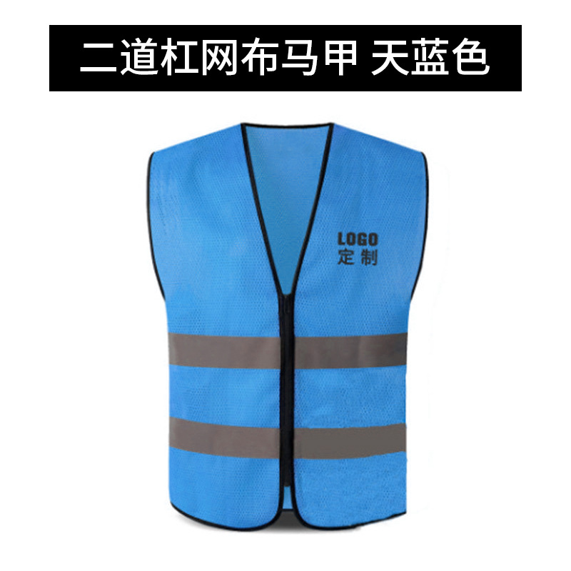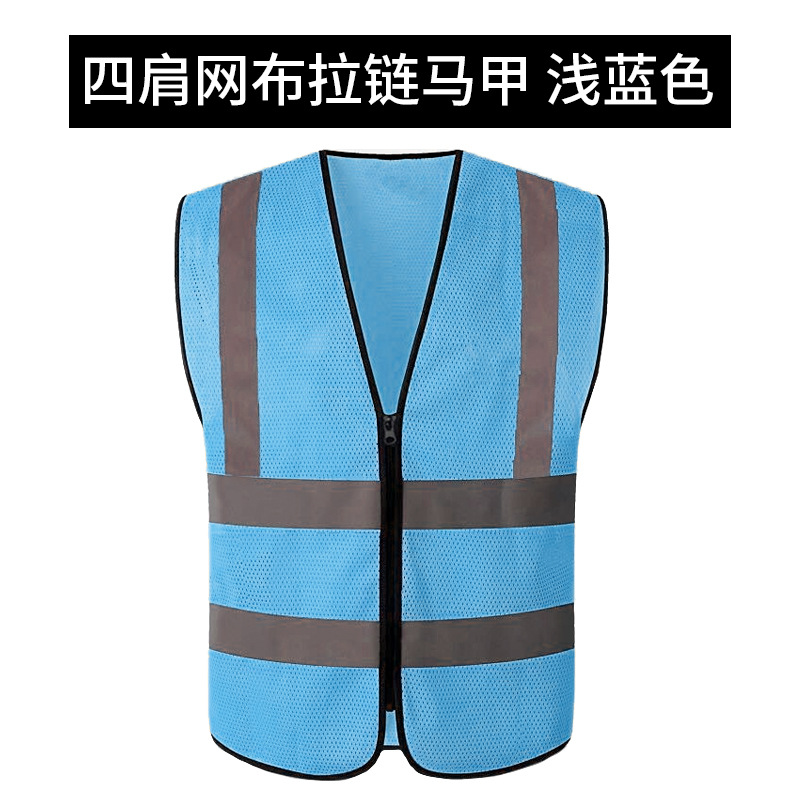 四肩网布拉链马甲*浅蓝色*高亮反光条