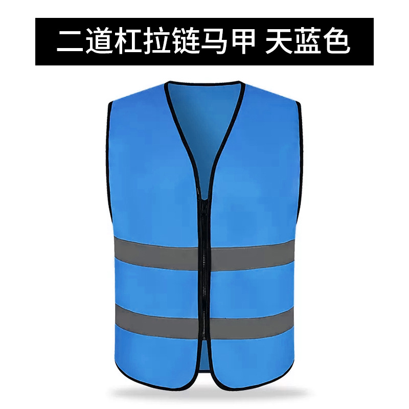 二道杠拉链马甲*天蓝色*高亮反光条