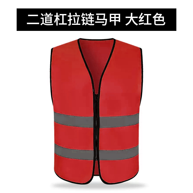 二道杠拉链马甲*大红色*高亮反光条