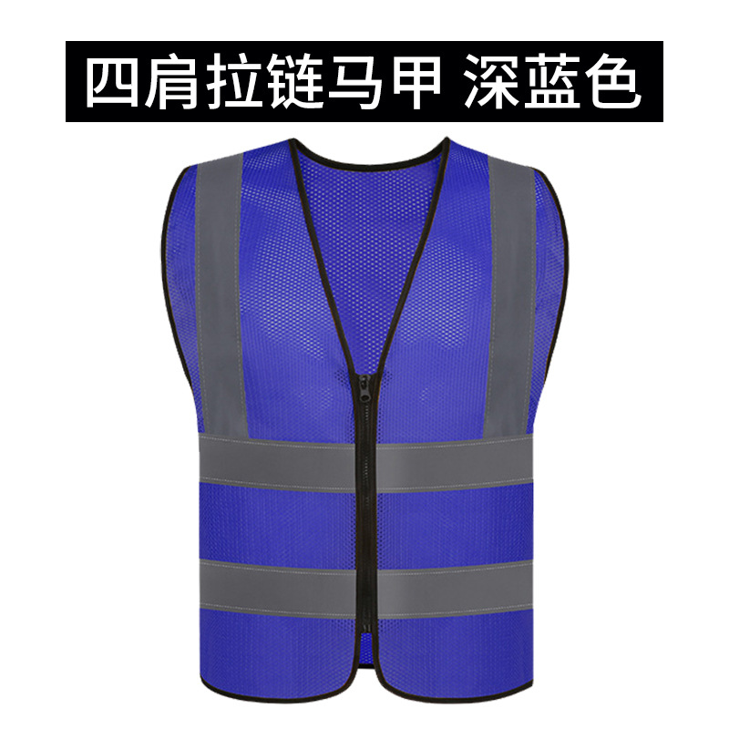 四肩网布拉链马甲*深蓝色*高亮反光条