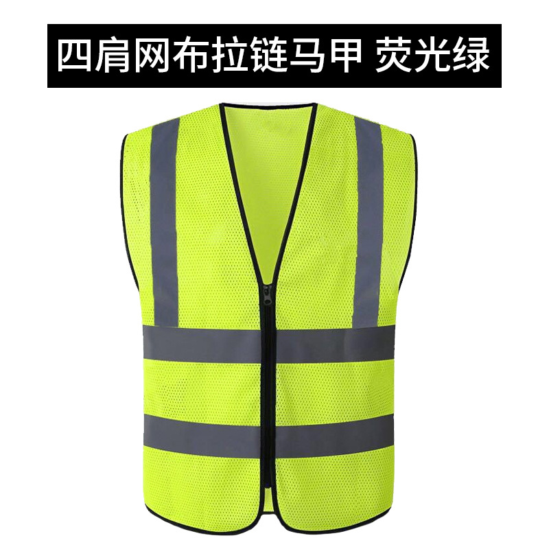 四肩网布拉链马甲*荧光绿*高亮反光条*
