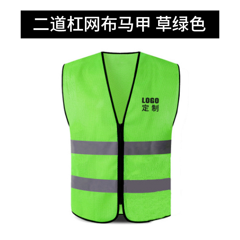 二道杠网布马甲*草绿色*高亮反光条