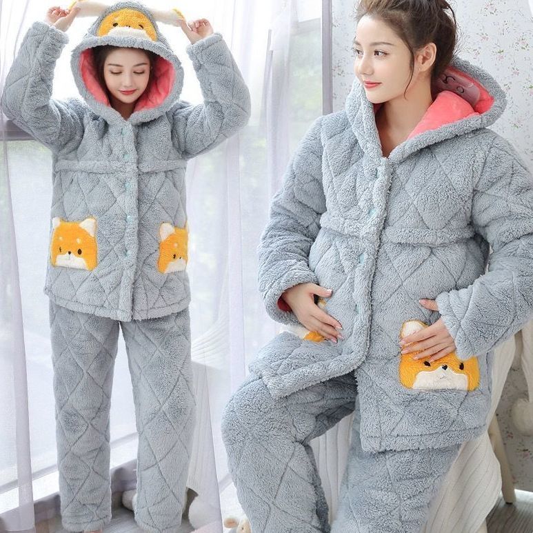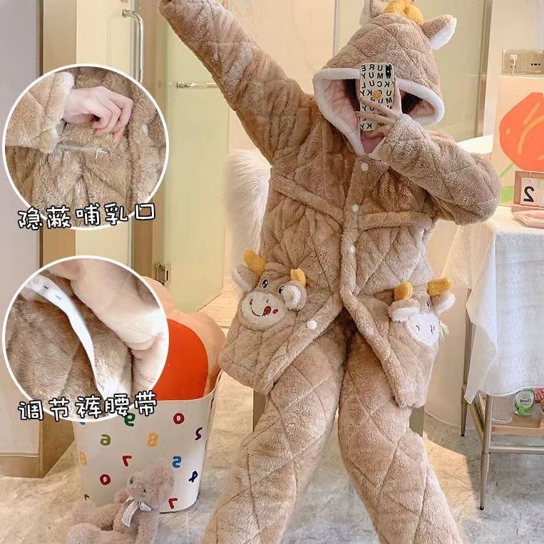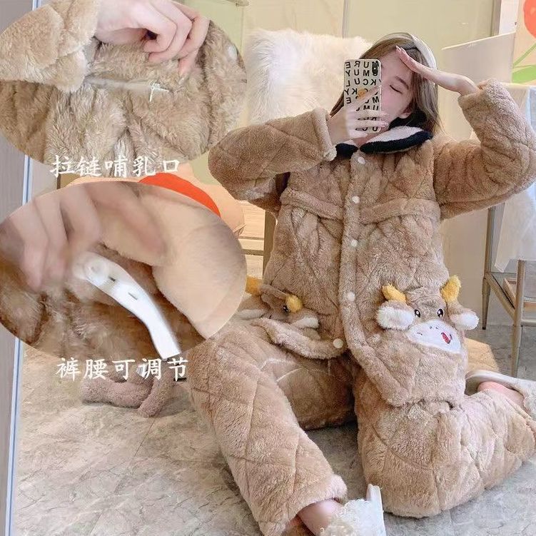 新款月子服秋冬产后12月份珊瑚绒孕妇睡衣冬季加厚哺乳大码家居服