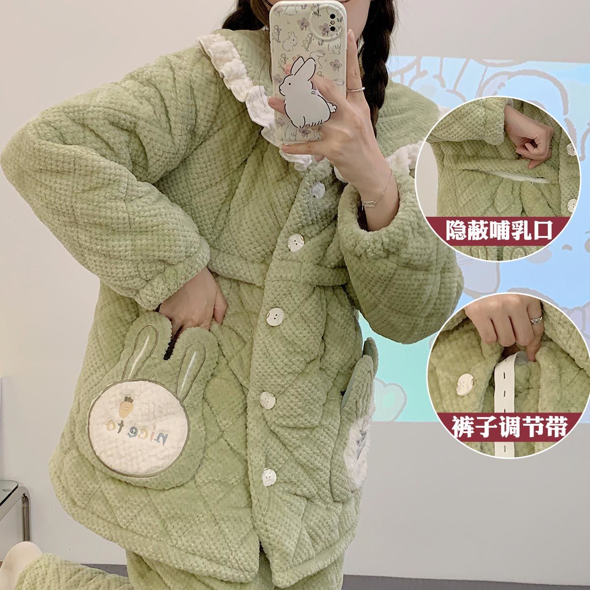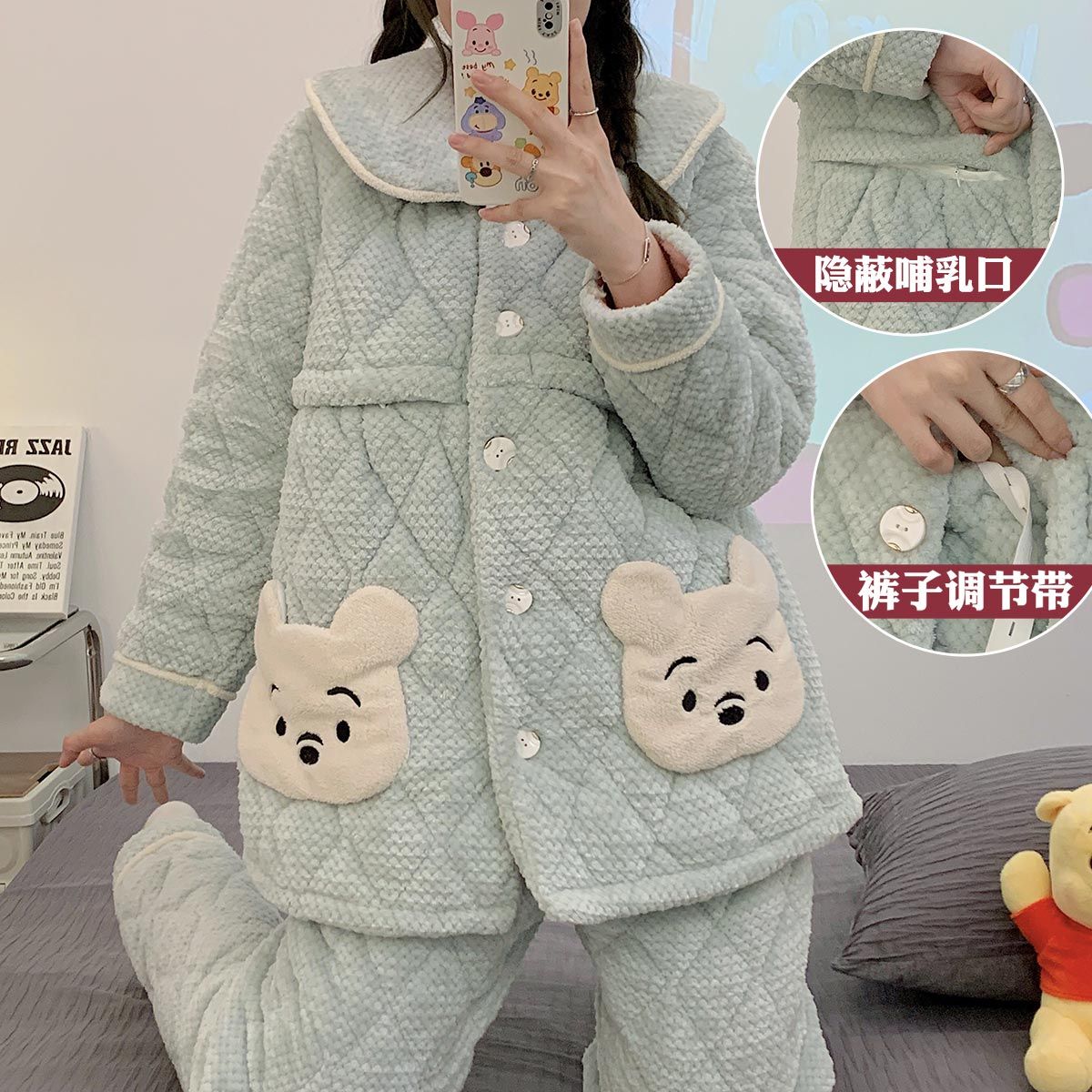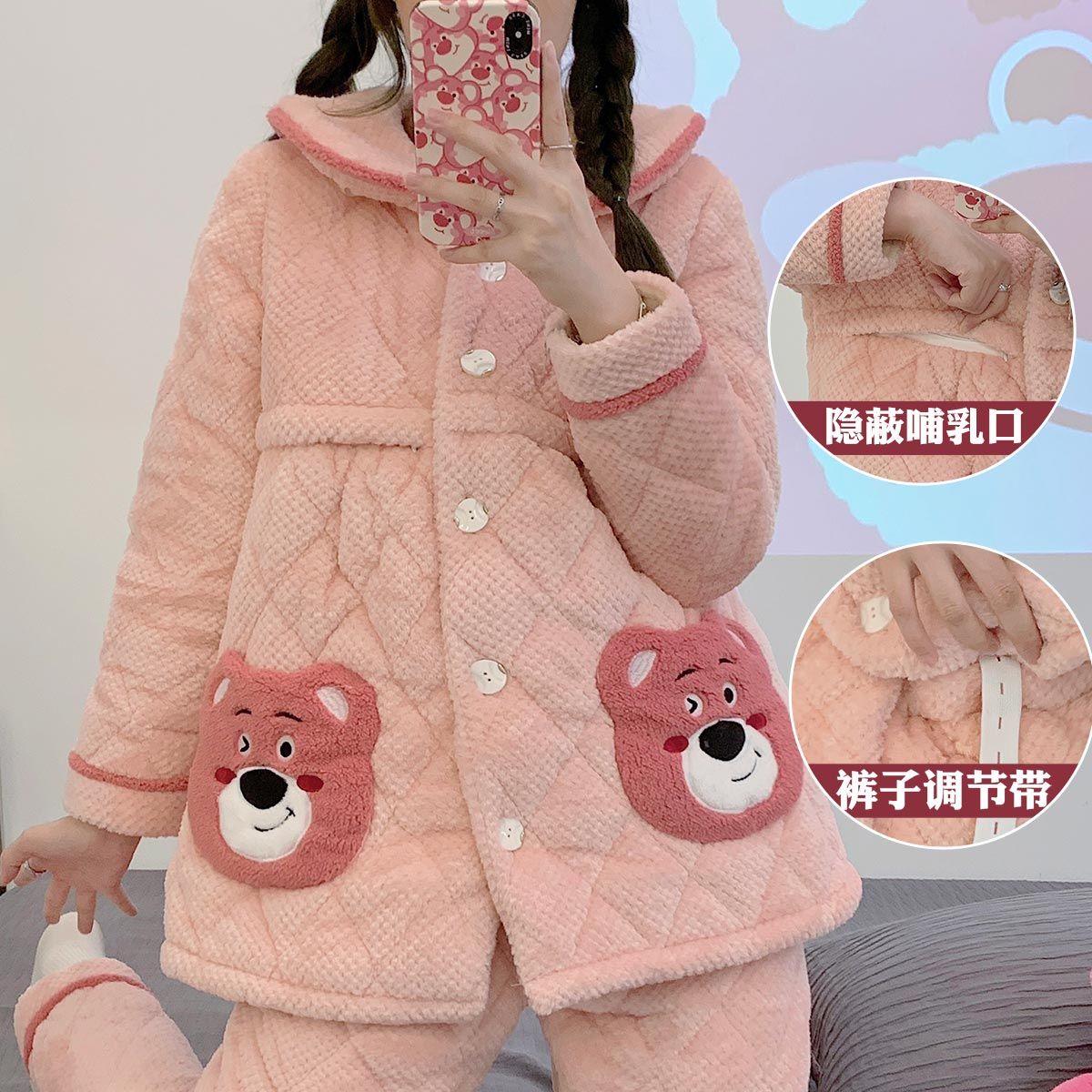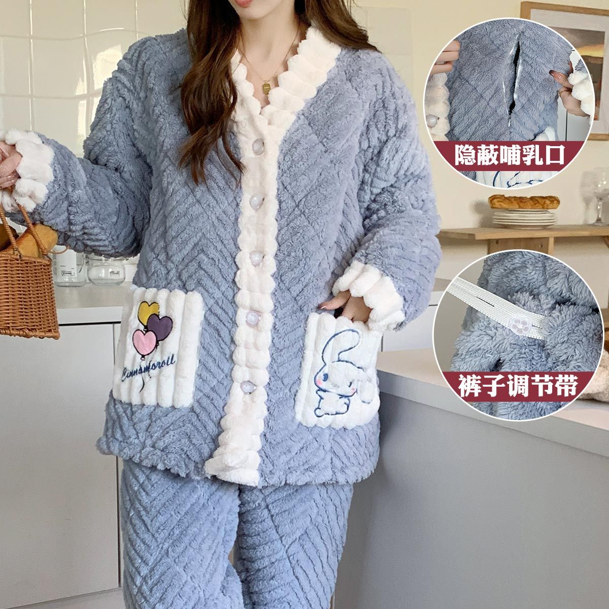 跨境孕妇睡衣秋冬季加厚加绒珊瑚绒月子服产后喂奶哺乳期衣服三层