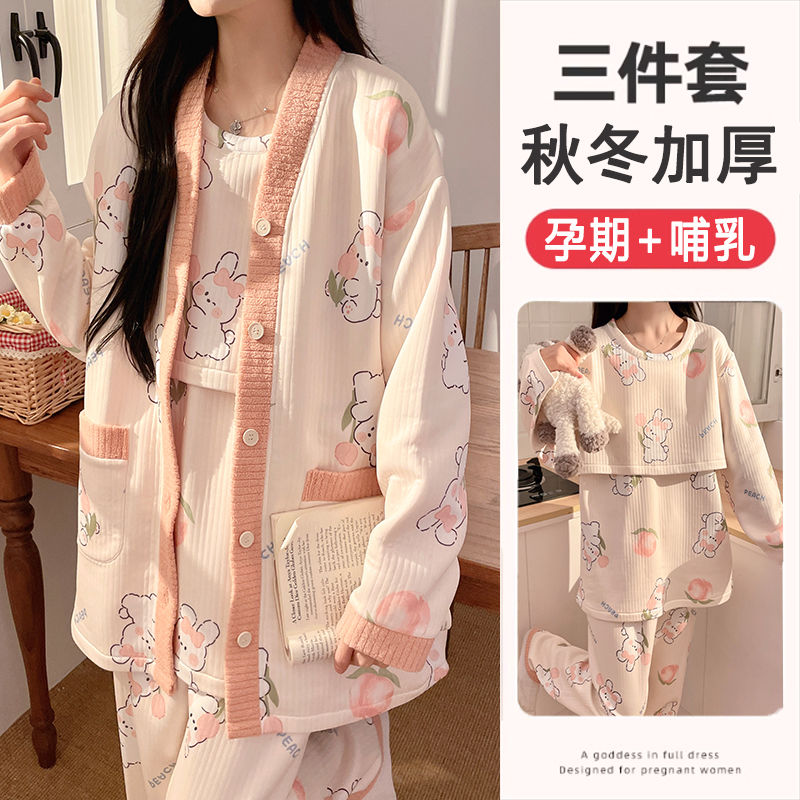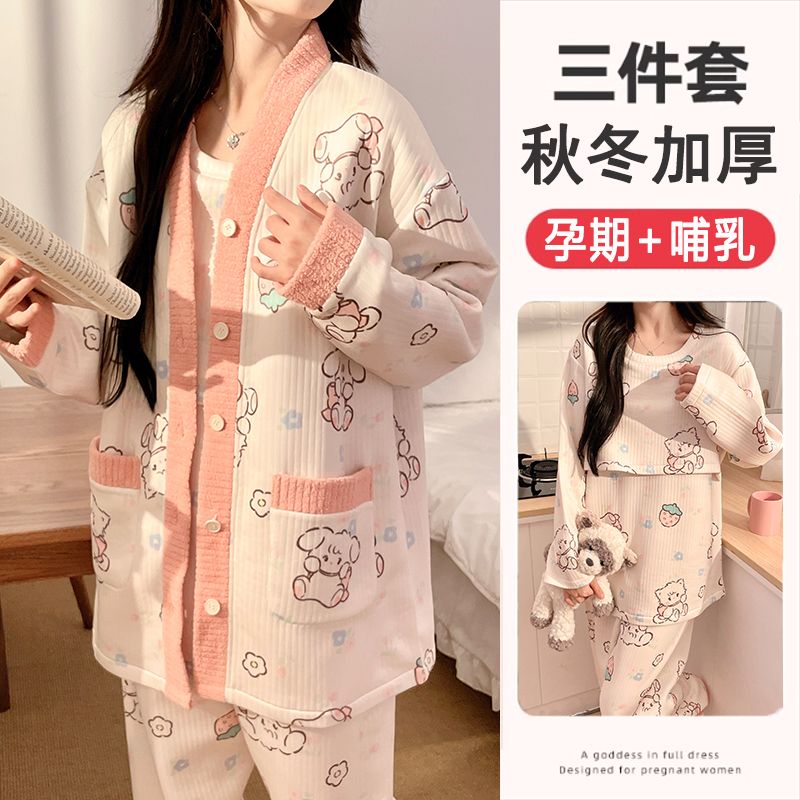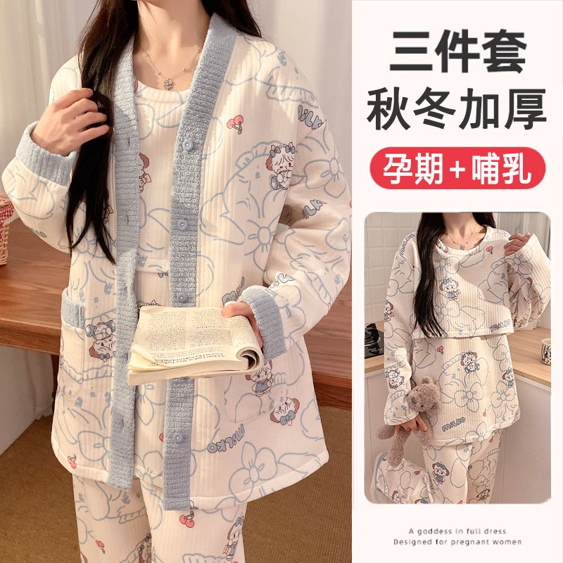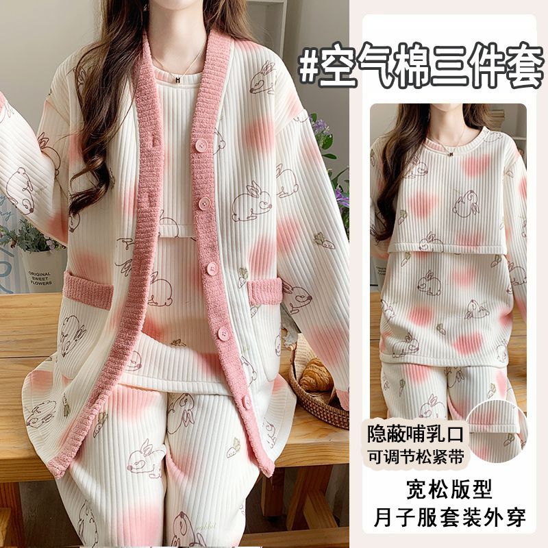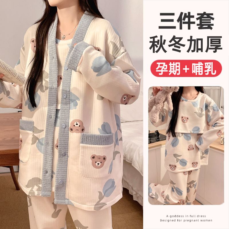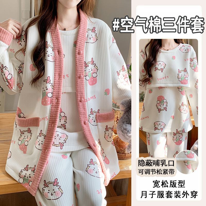 买1送1三件套空气棉月子服冬季加厚孕妇睡衣秋冬产妇产后哺乳套装
