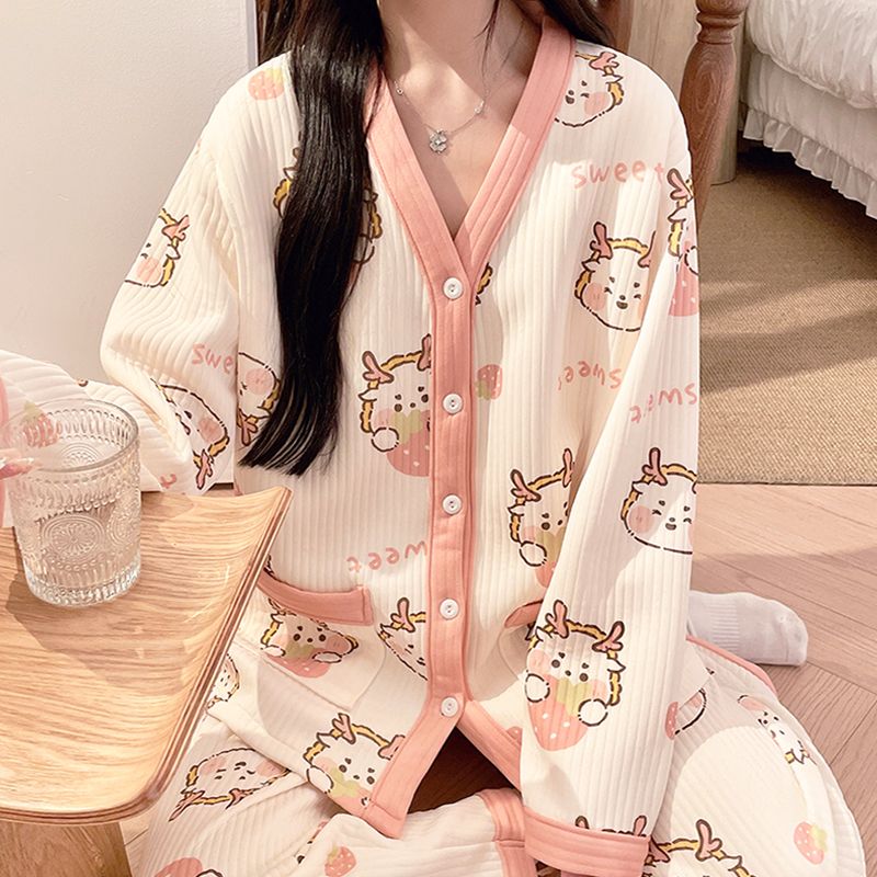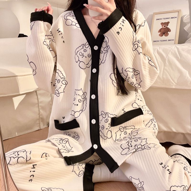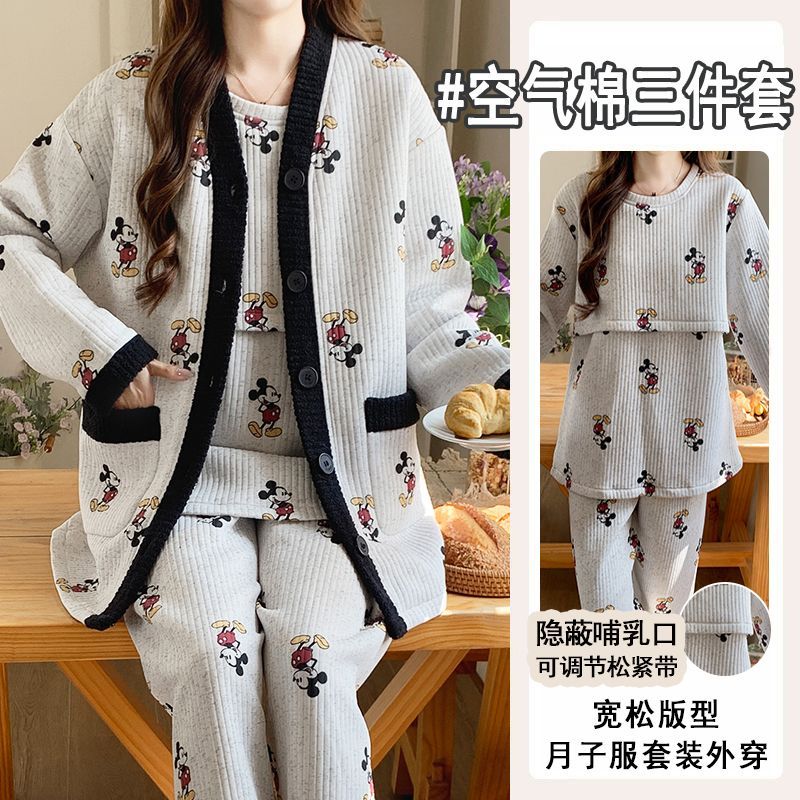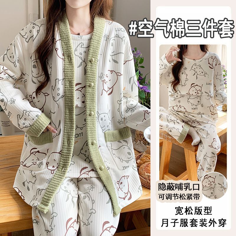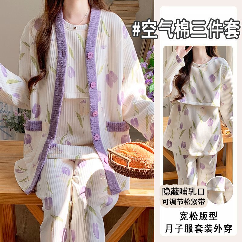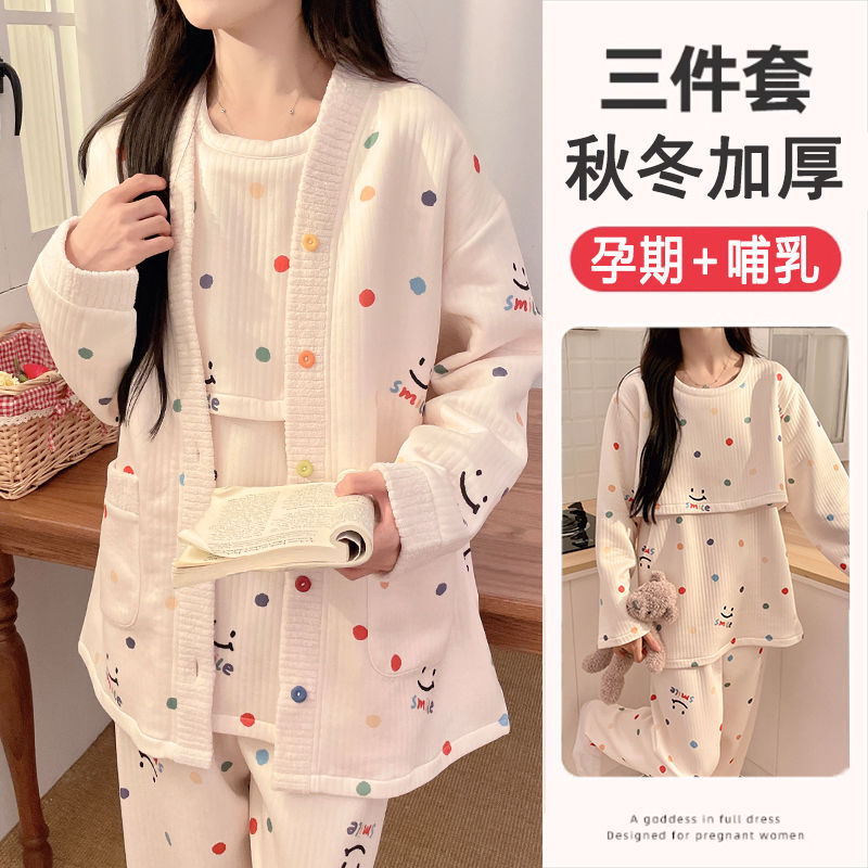 买1送1三件套空气棉月子服冬季加厚孕妇睡衣秋冬产妇产后哺乳套装
