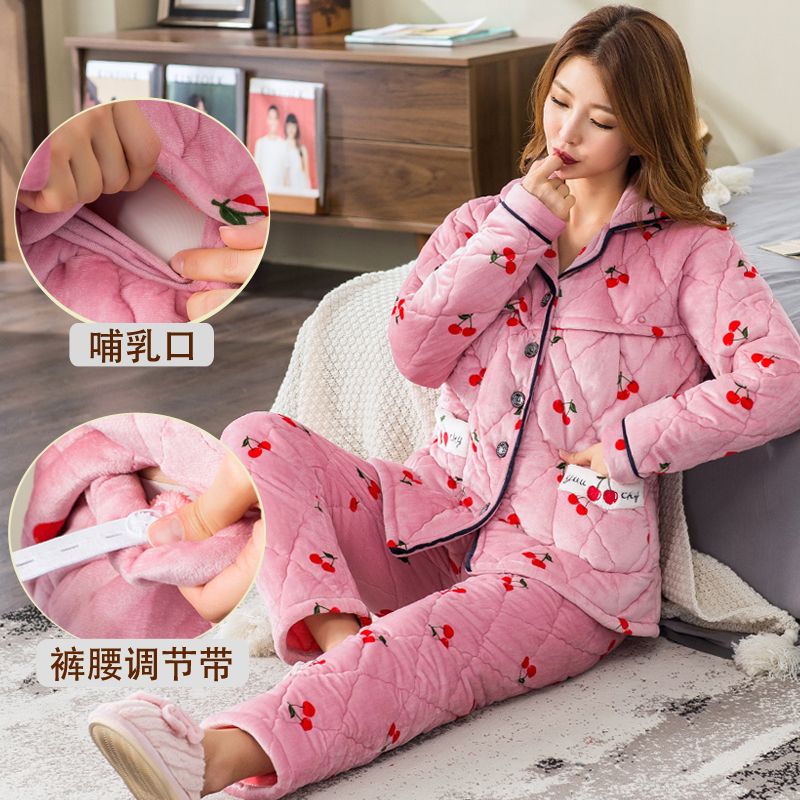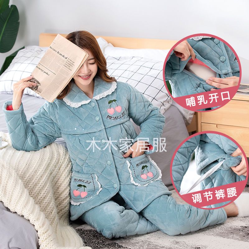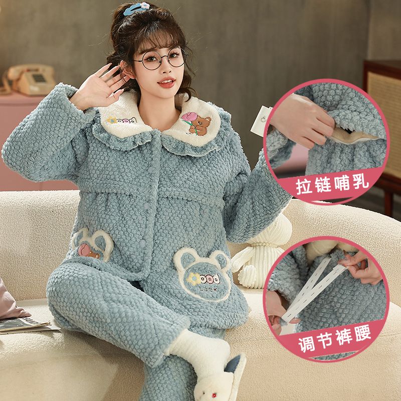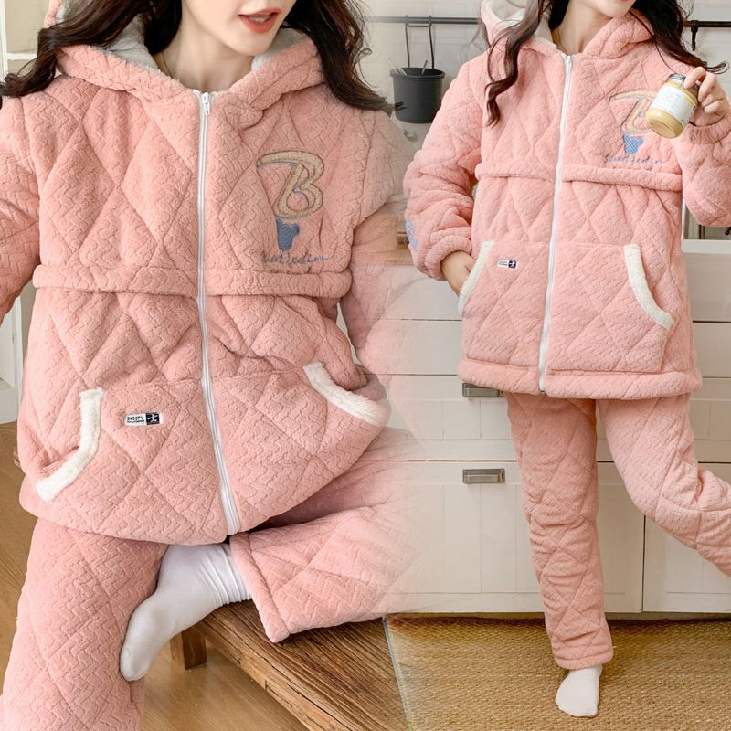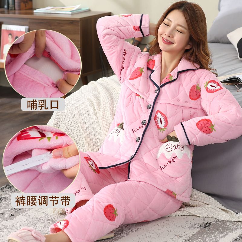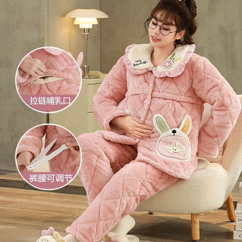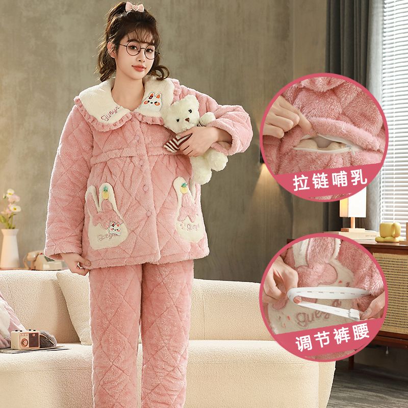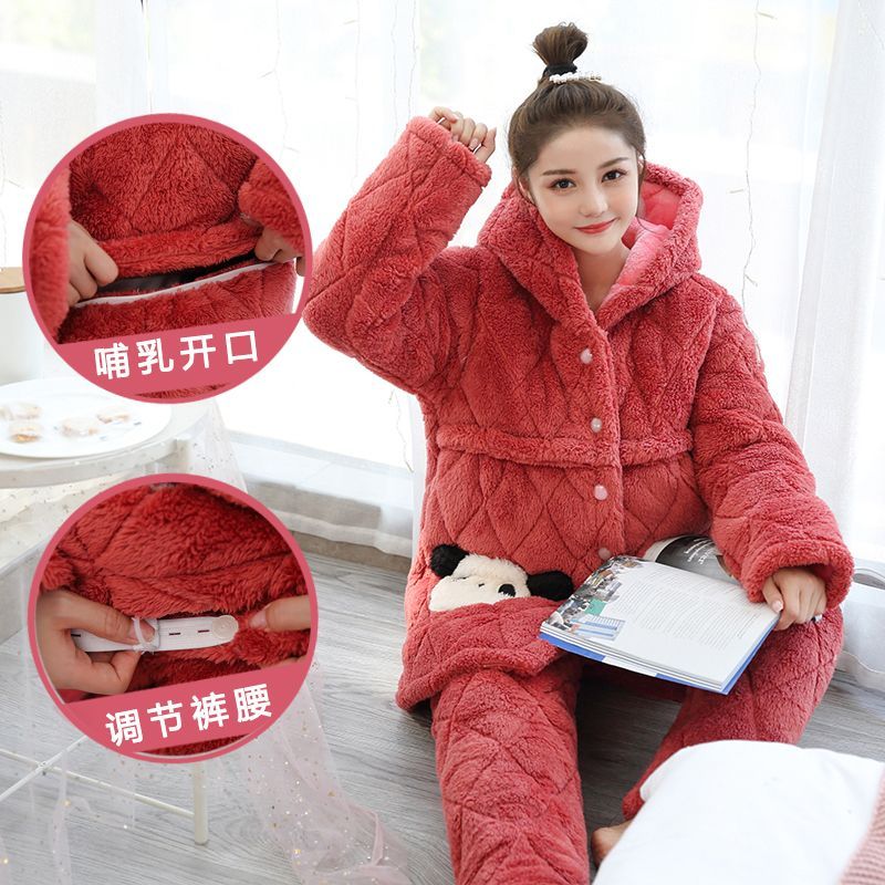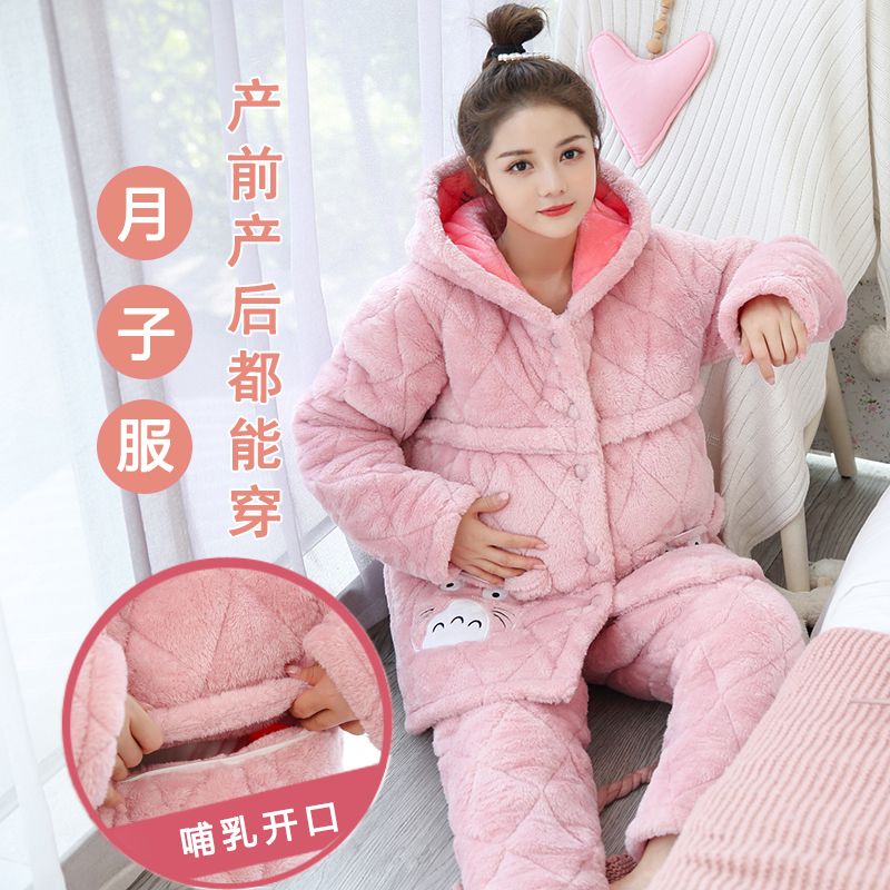 月子服冬季加厚夹棉加绒产后哺乳衣孕妇睡衣女冬加厚套装12月份秋