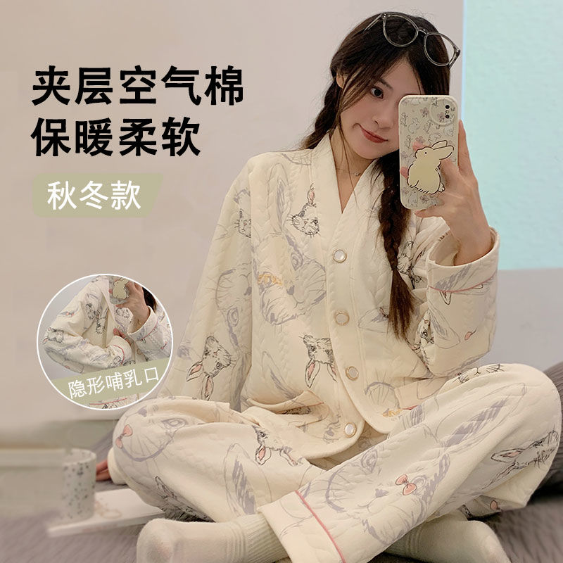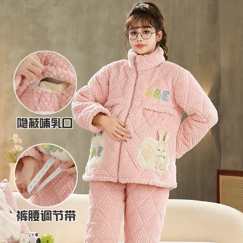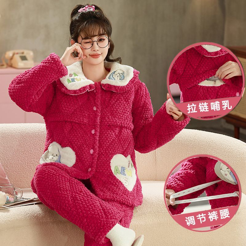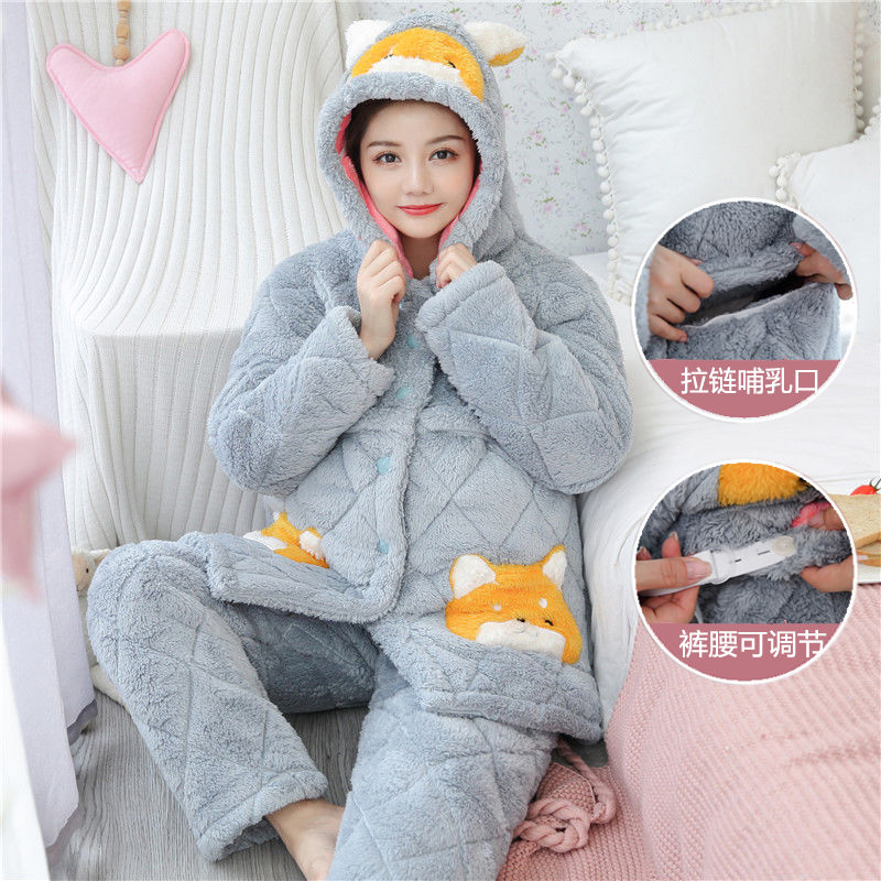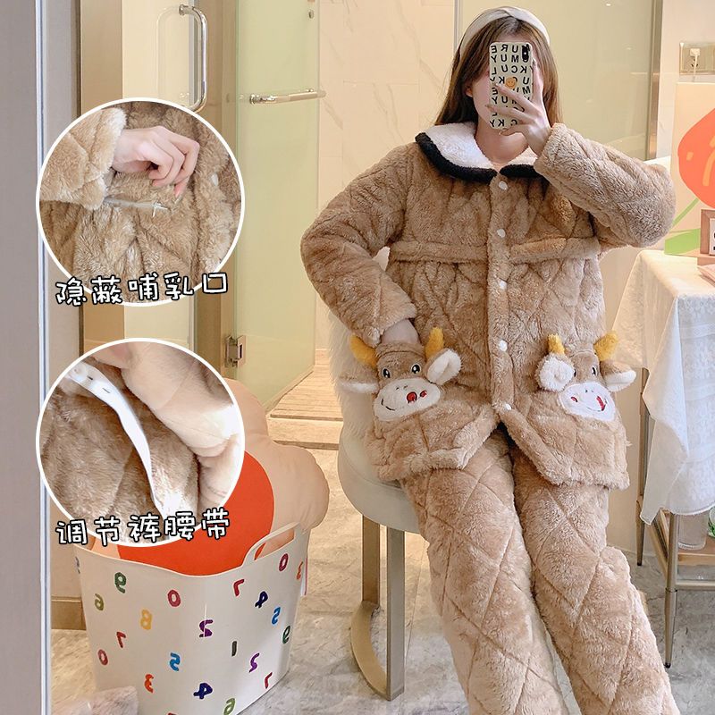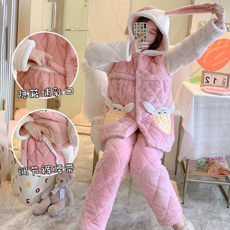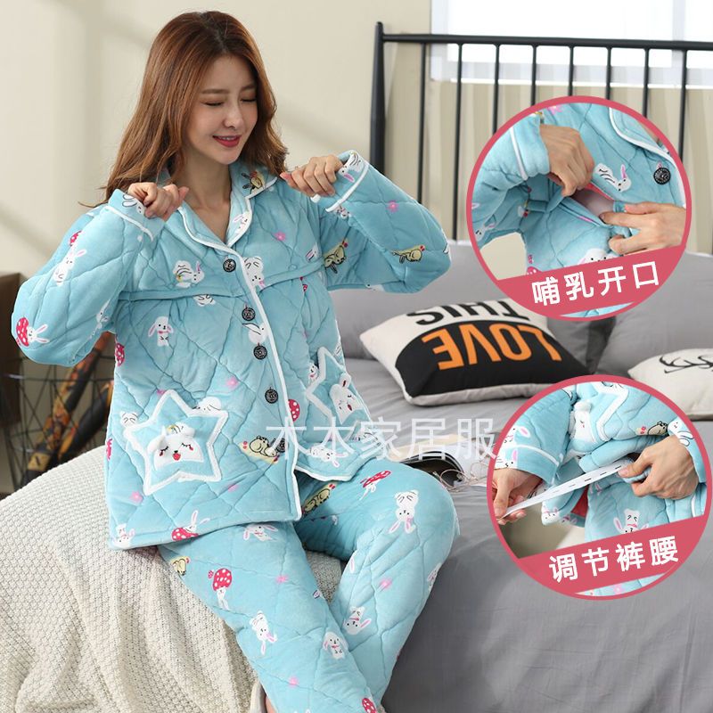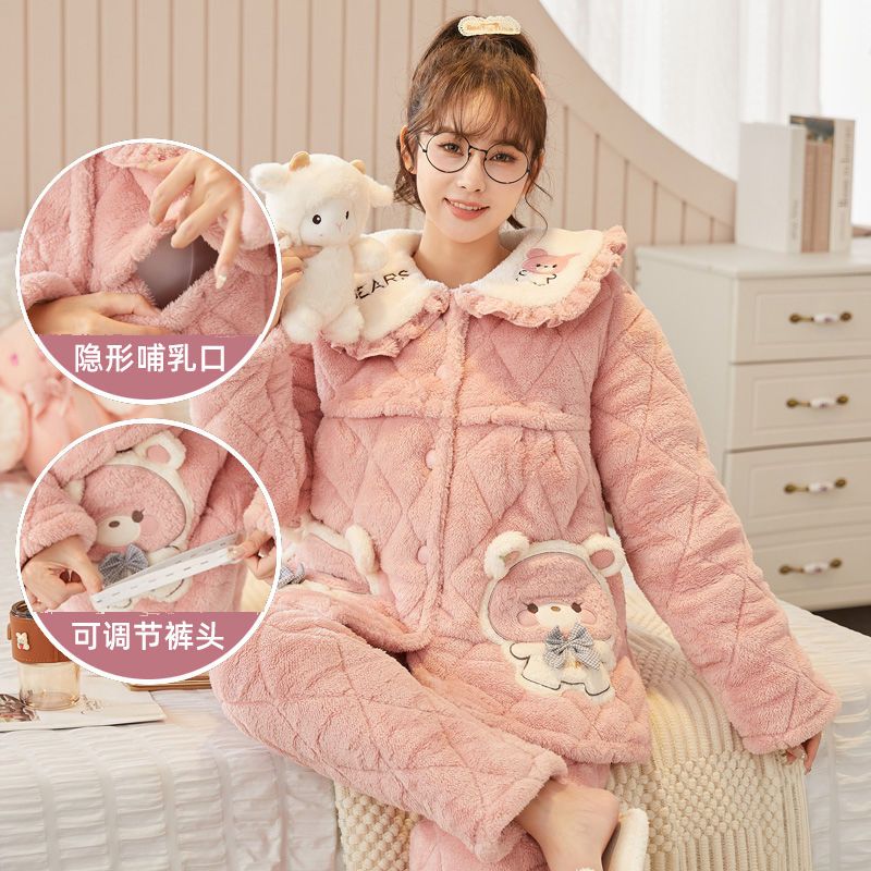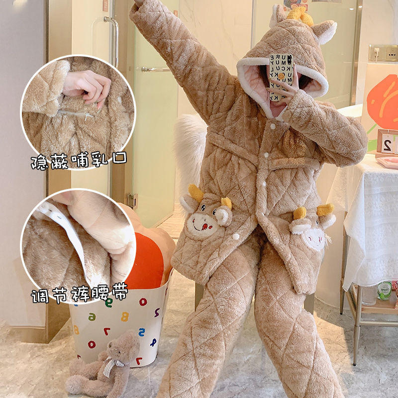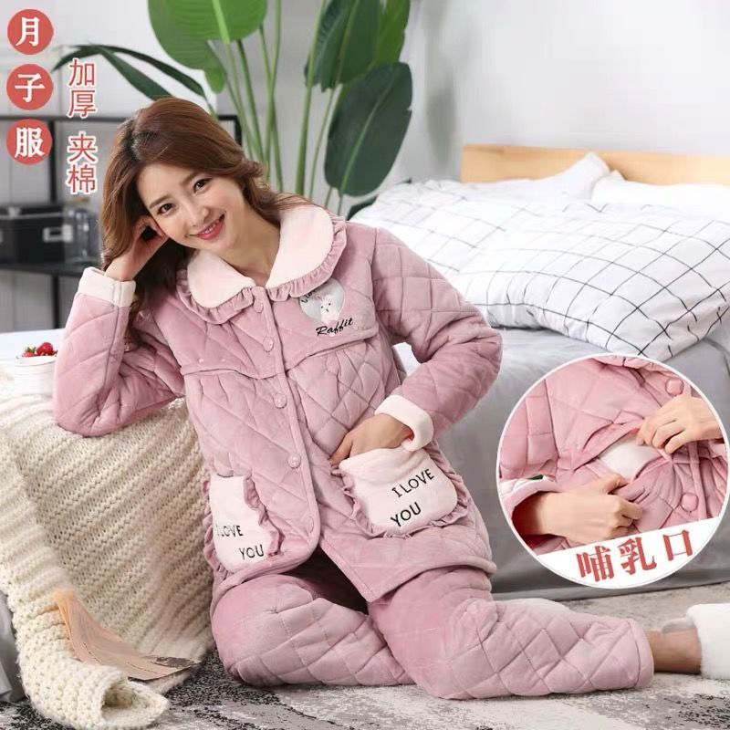 月子服冬季加厚夹棉加绒产后哺乳衣孕妇睡衣女冬加厚套装12月份秋
