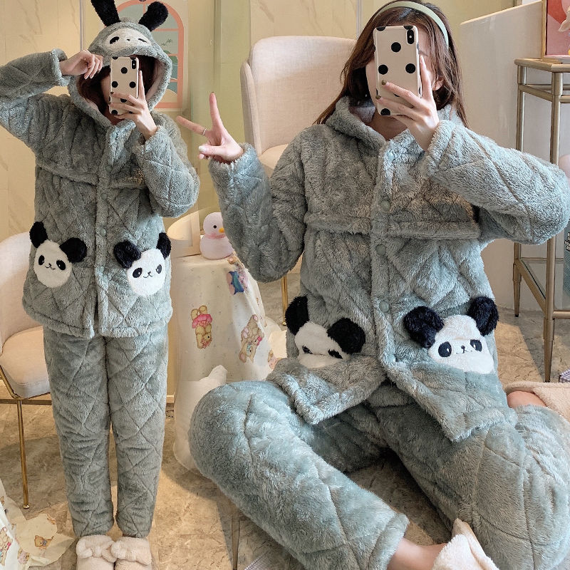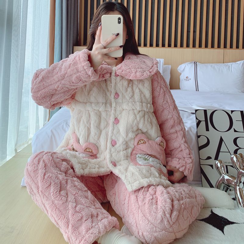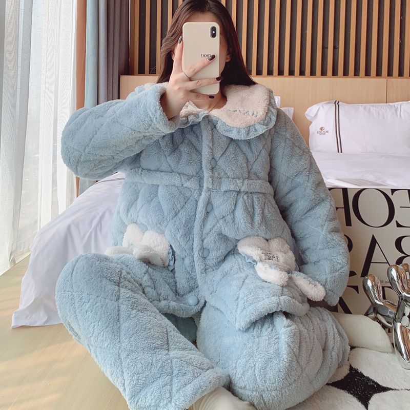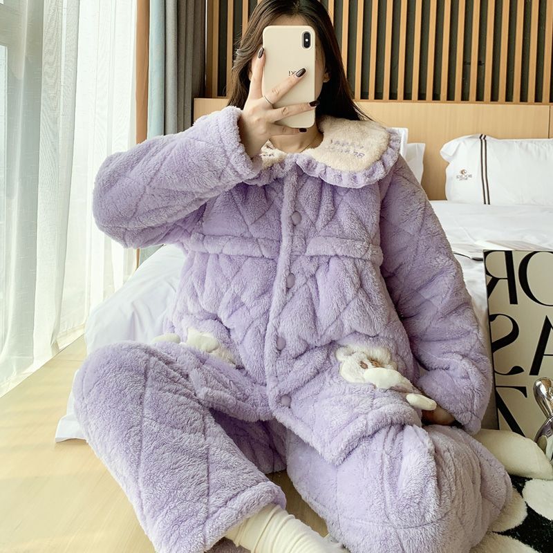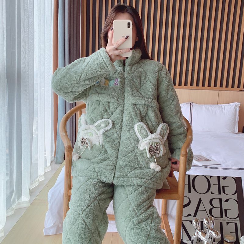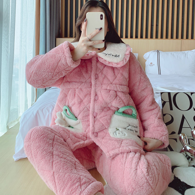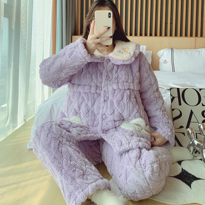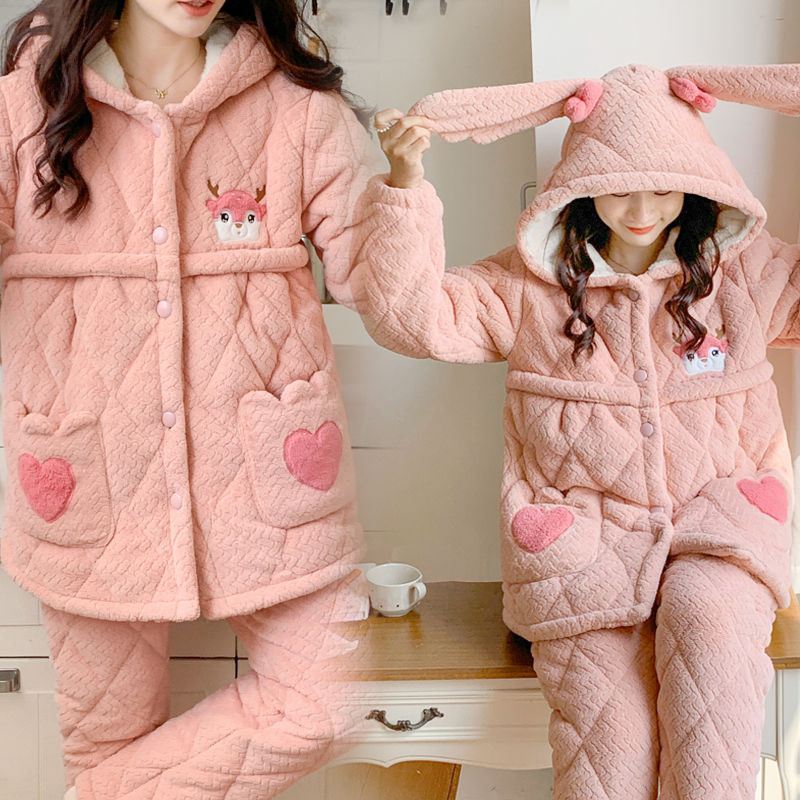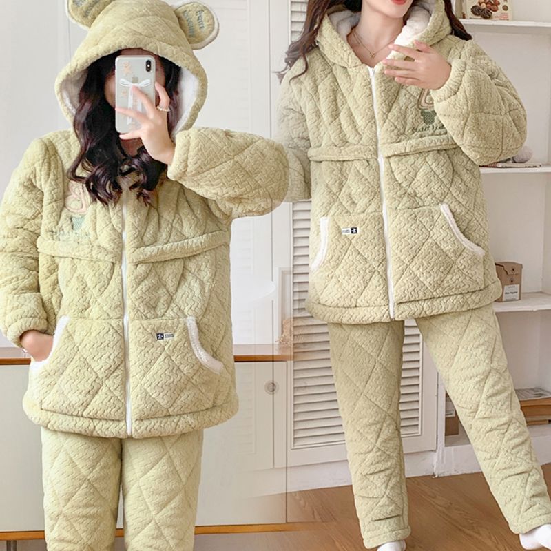 月子服冬季加厚夹棉加绒产后哺乳衣孕妇睡衣女冬加厚套装12月份秋