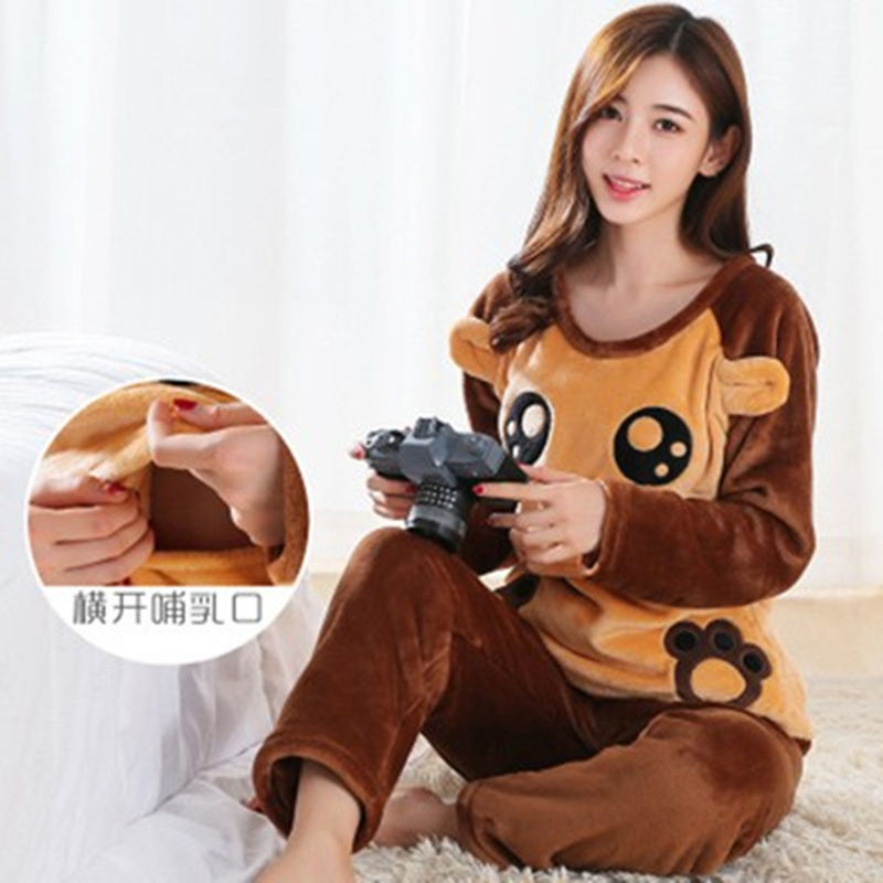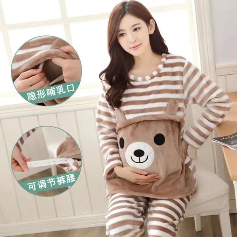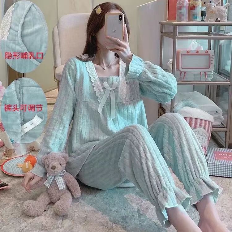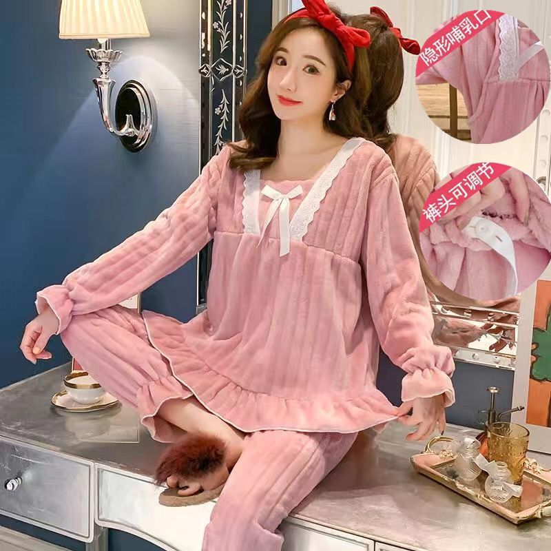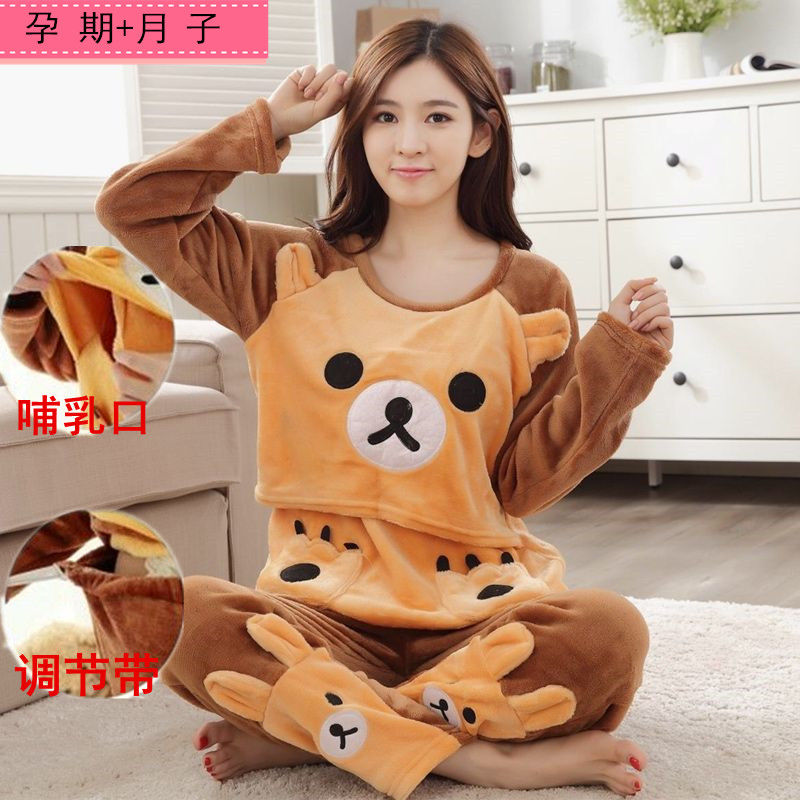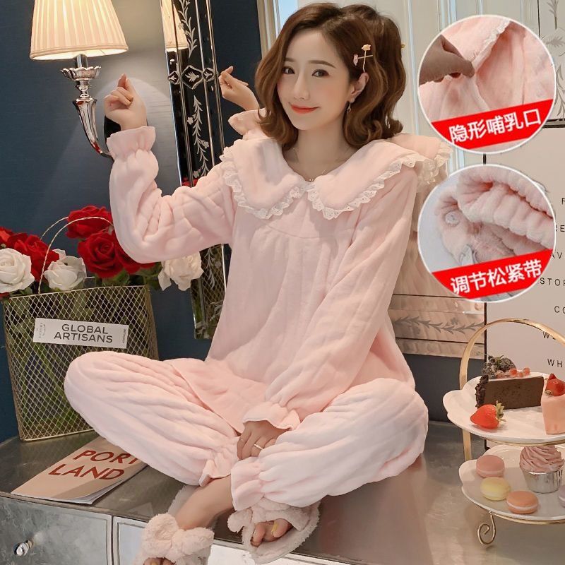 孕妇睡衣女秋冬季法兰绒加厚加绒产后月子服喂奶哺乳衣怀孕期套装