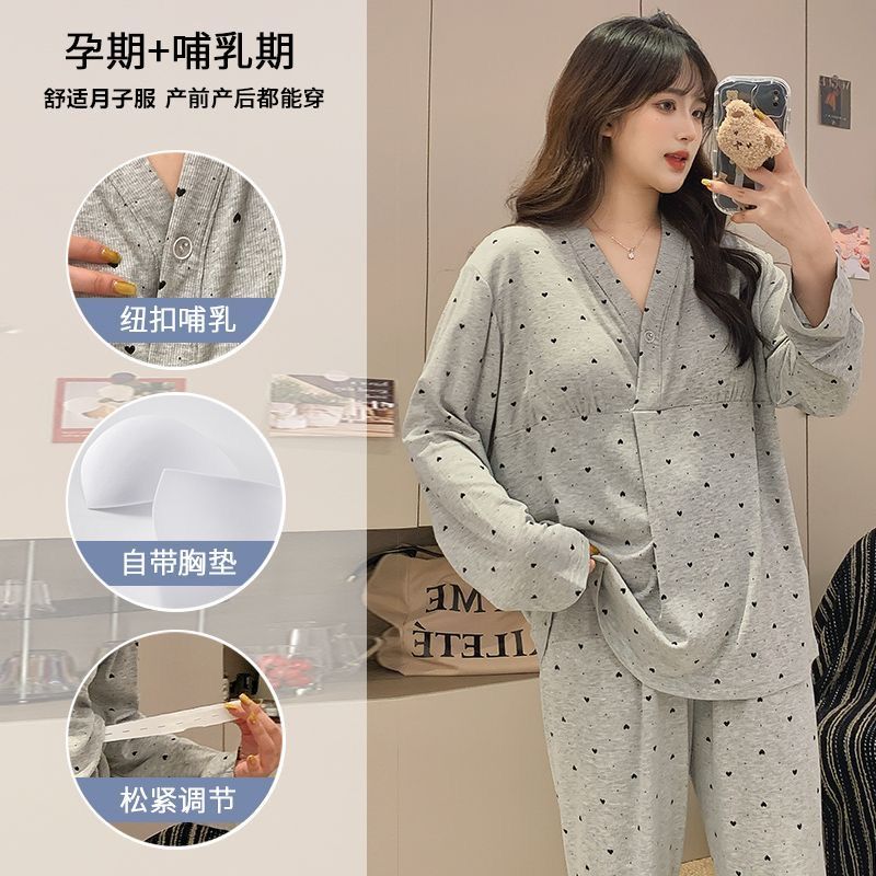 跨境2026新款月子服夏季薄款带胸垫防凸点长袖长裤产前产后哺乳家