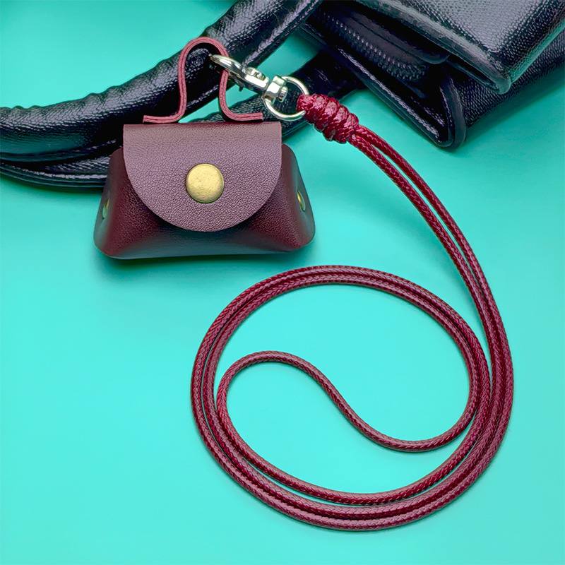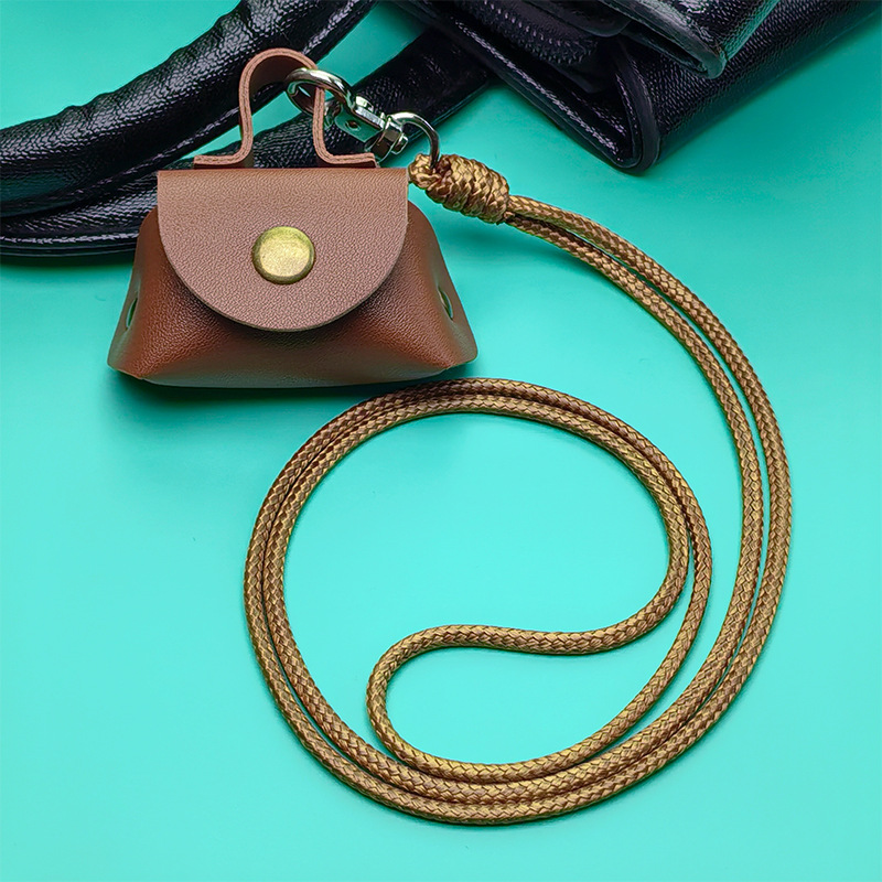 皮质迷你钱包项链挂件小众高级感耳机收纳包挂绳迷你钱包挂件时尚