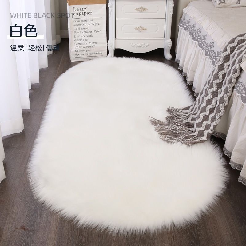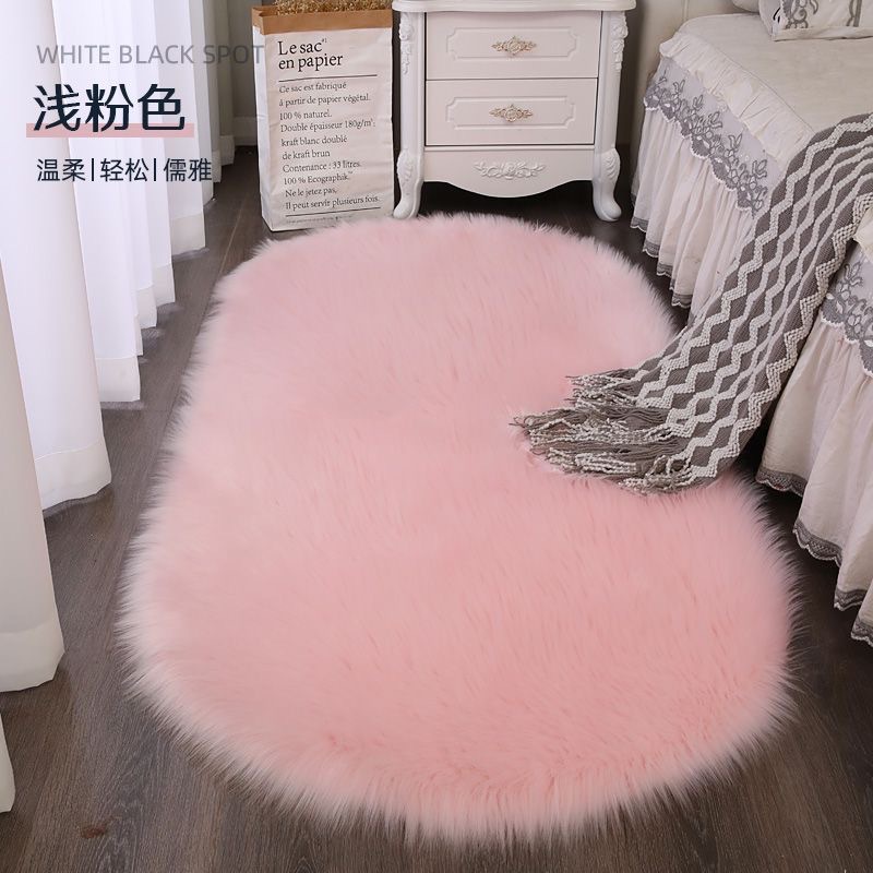 北欧仿羊毛椭圆形地毯卧室客厅床边毯沙发茶几毛毛毯飘窗阳台地垫