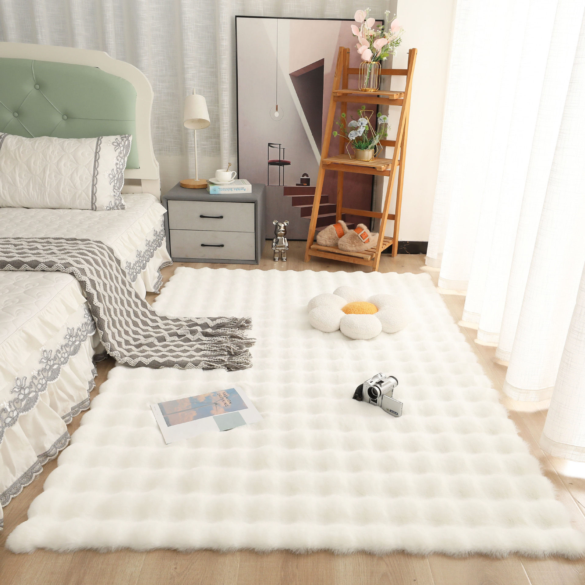 奶油风泡泡绒地毯毛绒地垫卧室床边毯客厅沙发飘窗衣帽间兔毛垫子