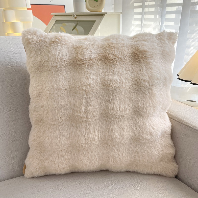 仿兔毛泡泡绒抱枕套沙发客厅靠垫纯色靠枕床头毛绒方形靠垫套批发