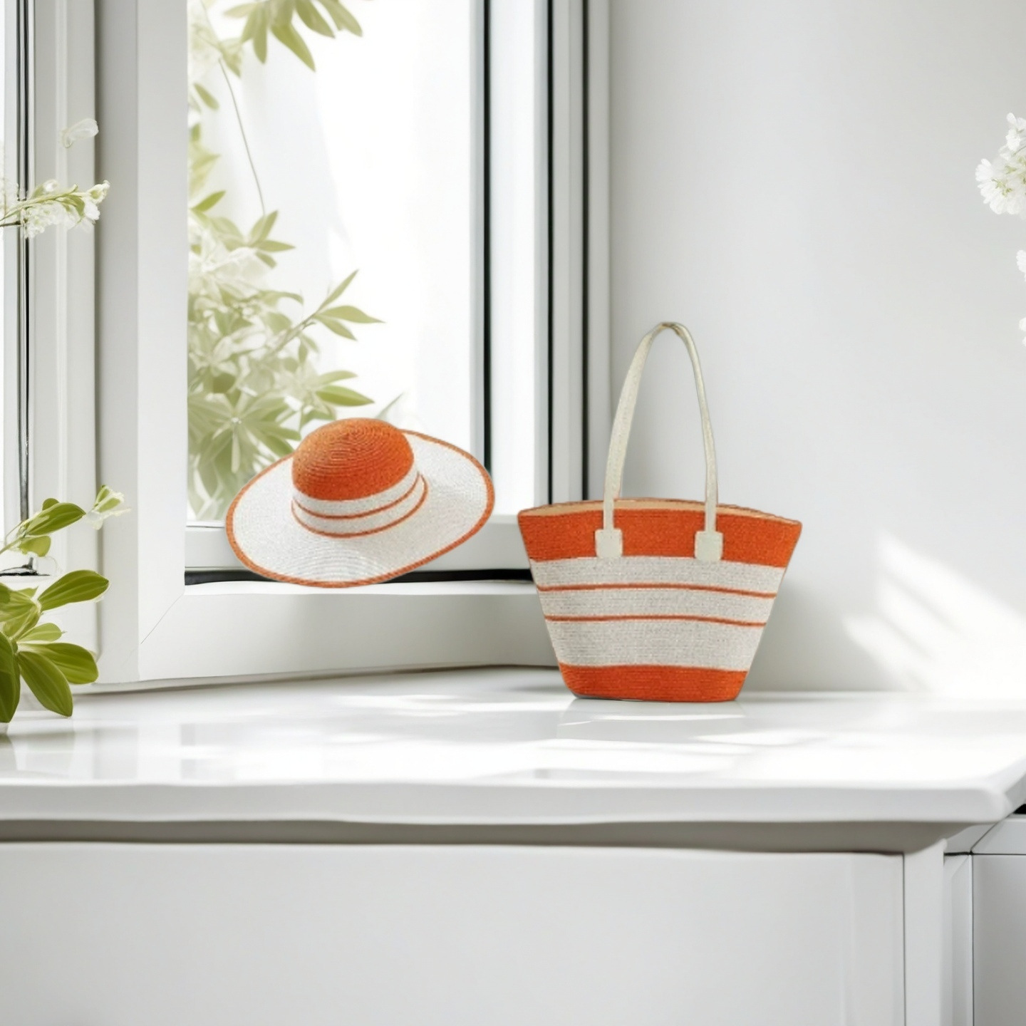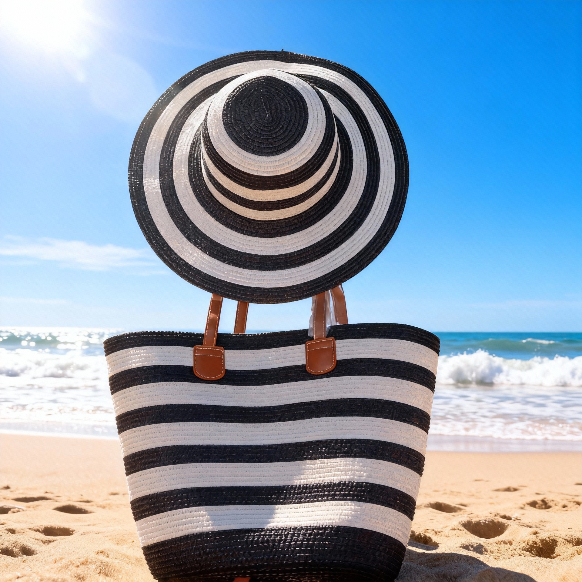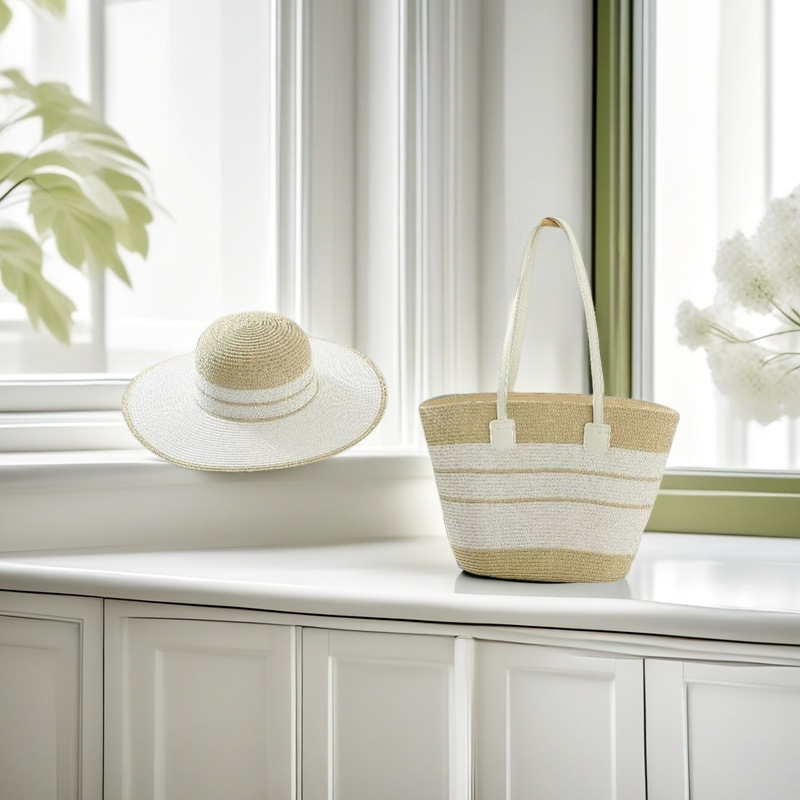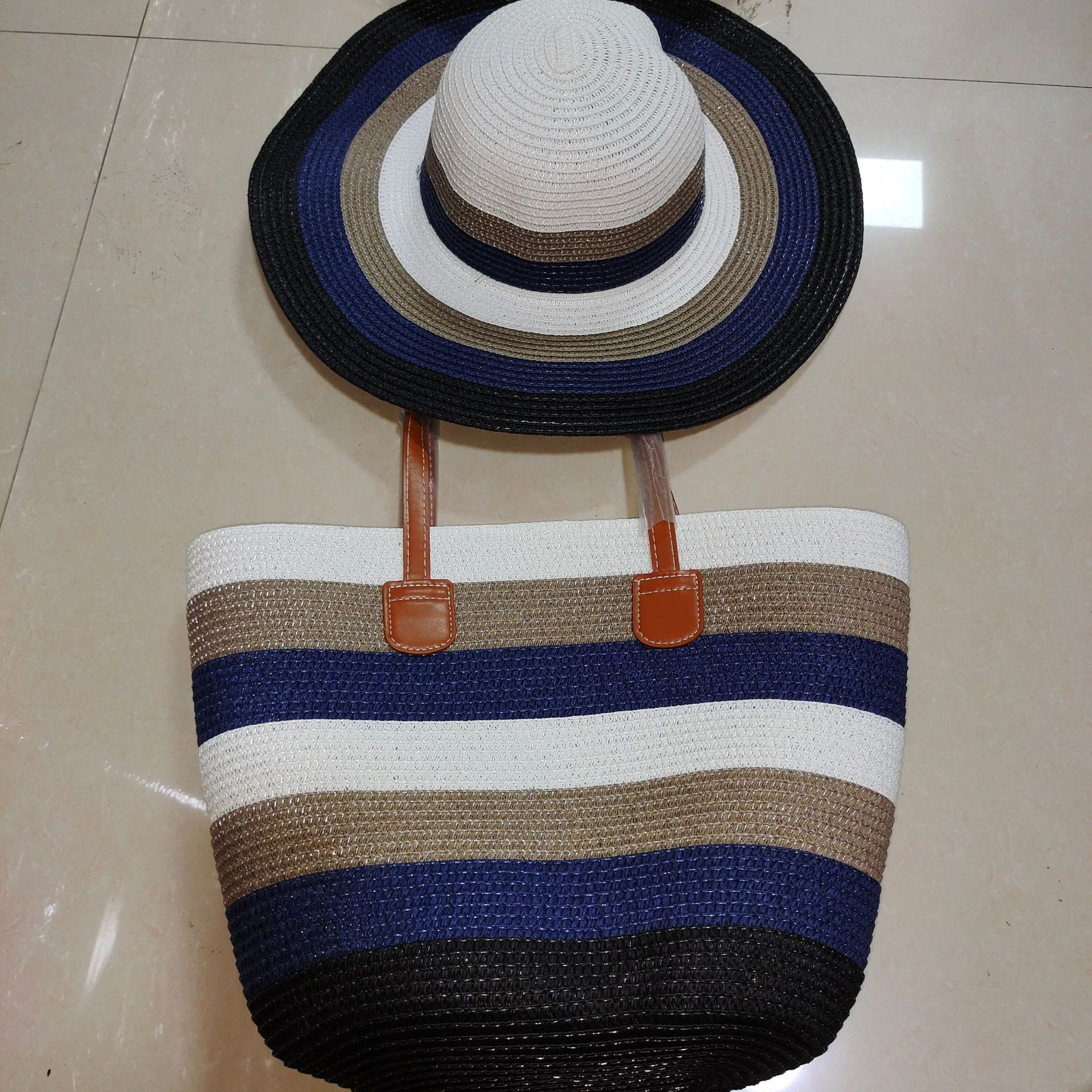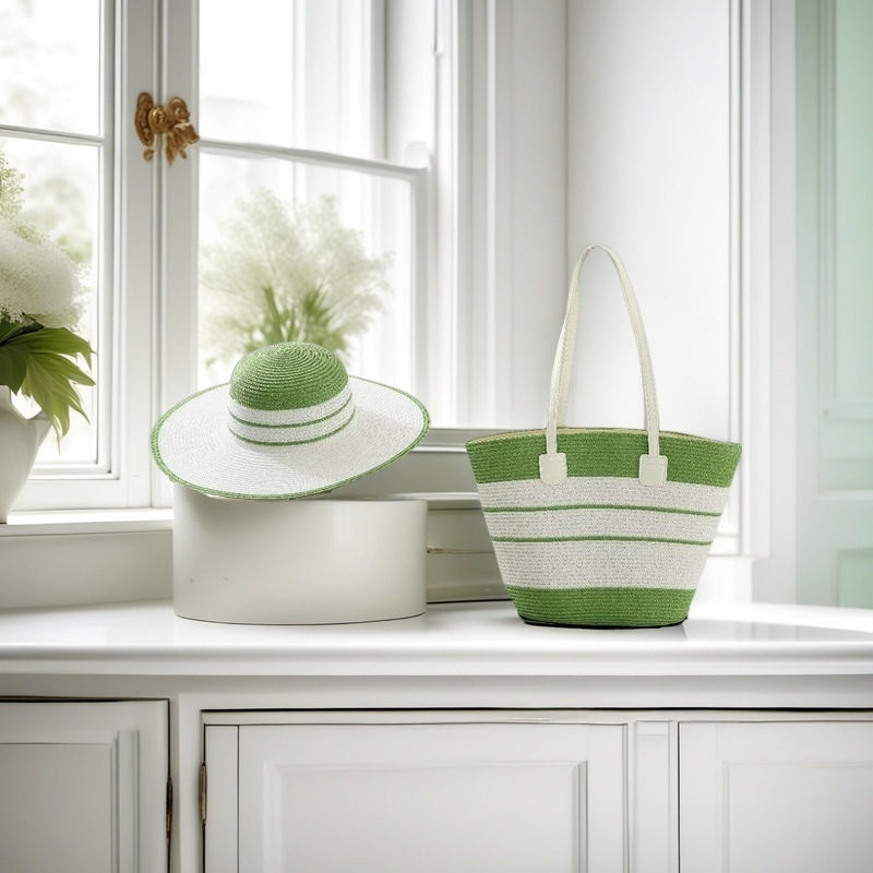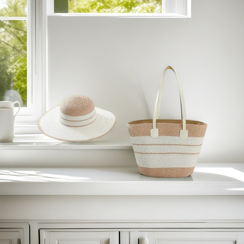 跨境草帽草编包两件套遮阳帽大容量条纹托特包单肩包沙滩包工厂店