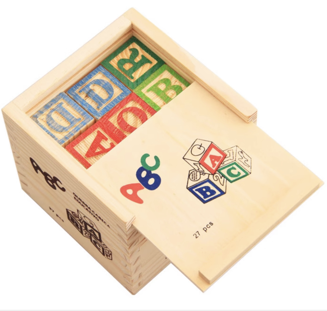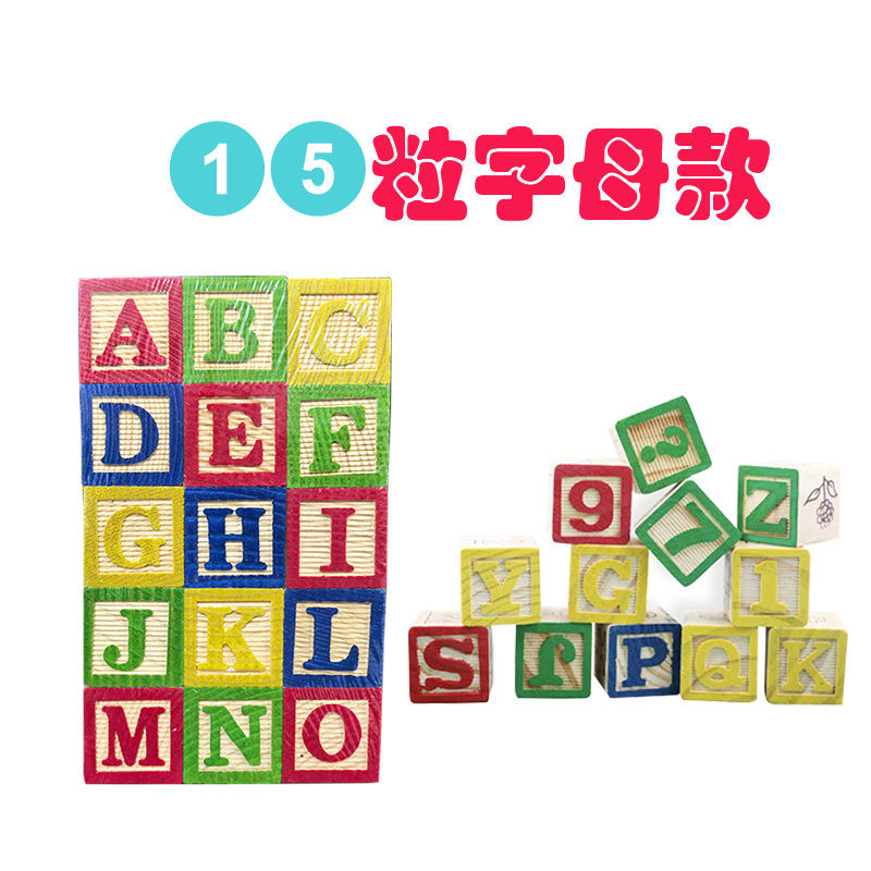 木制26英文字母48粒27粒15粒冲印积木蒙氏教具彩色叠叠乐益智玩具