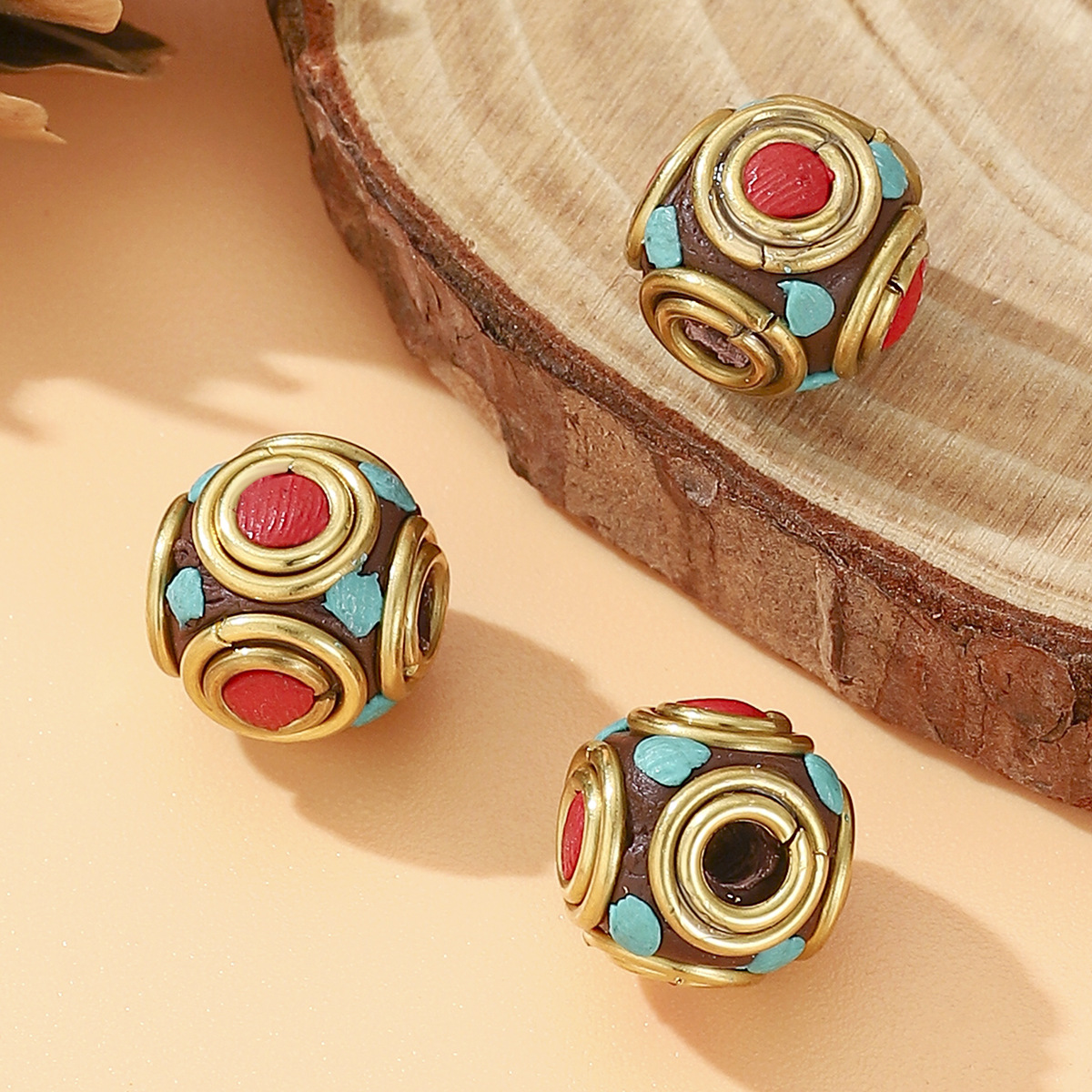 DIY配件批发尼泊尔铜珠配件手工镶嵌绿松石藏饰隔珠散珠