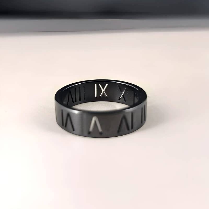 6mm镂空罗马戒-黑色 尺码
