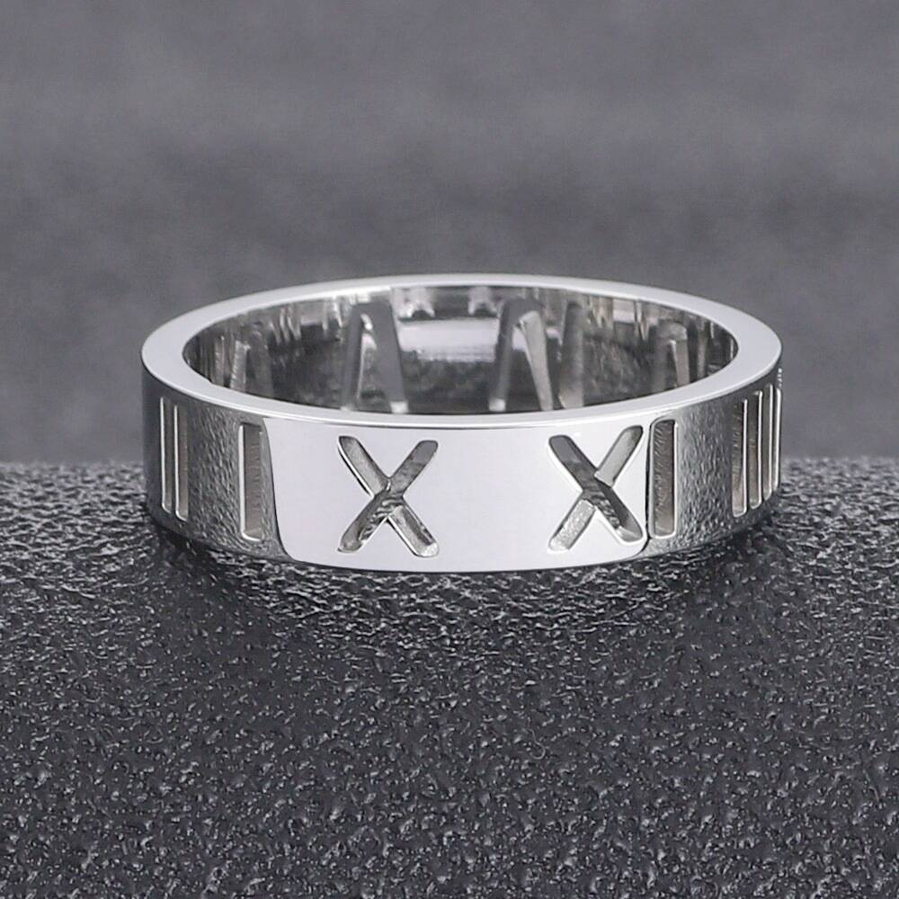 6mm镂空罗马戒-银色