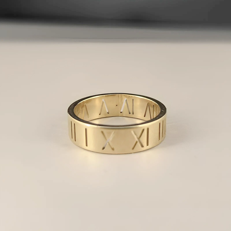 6mm镂空罗马戒-金色