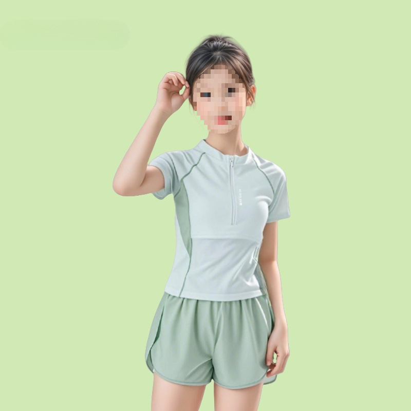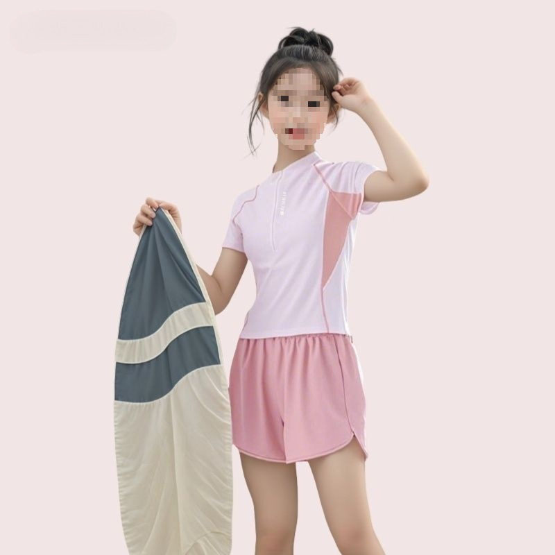 儿童泳衣女童分体速干泳装带胸垫学生游泳套装短袖短裤两件套